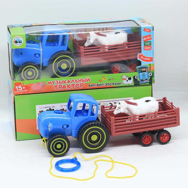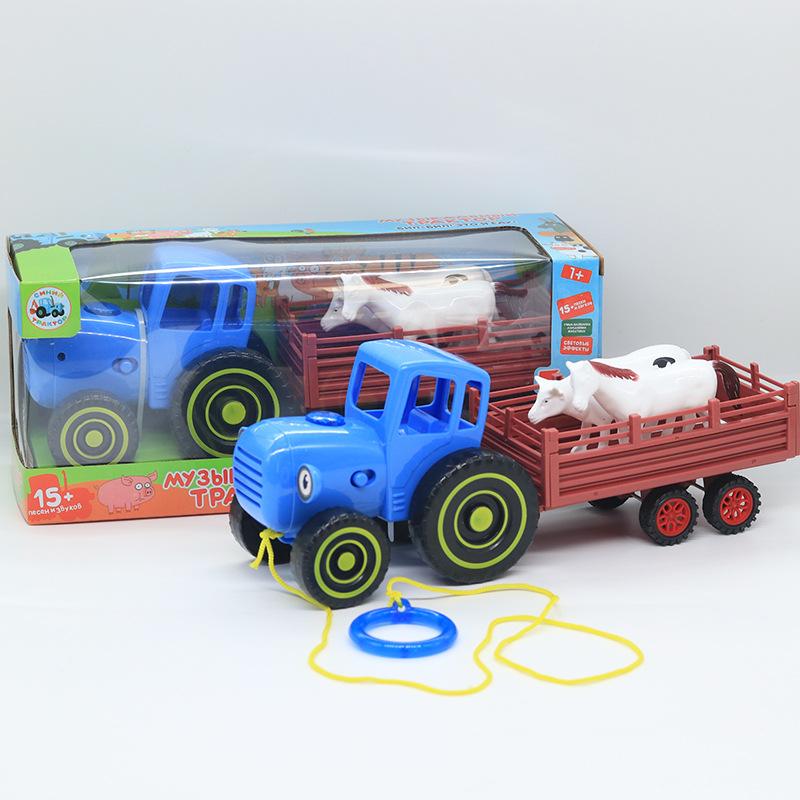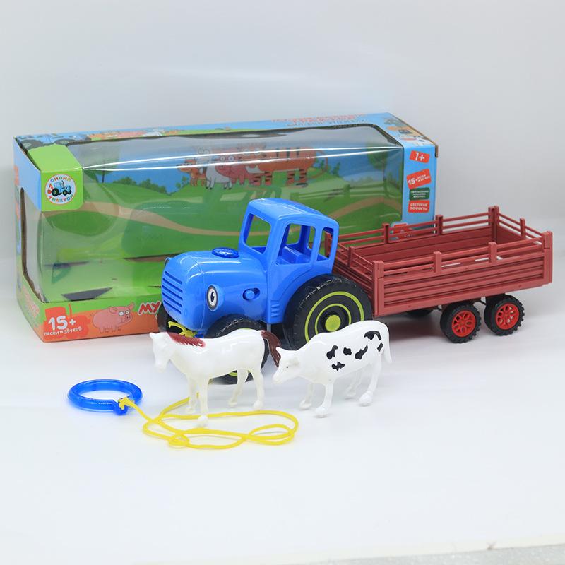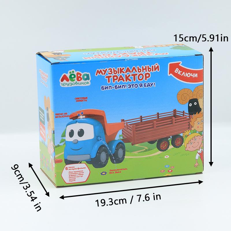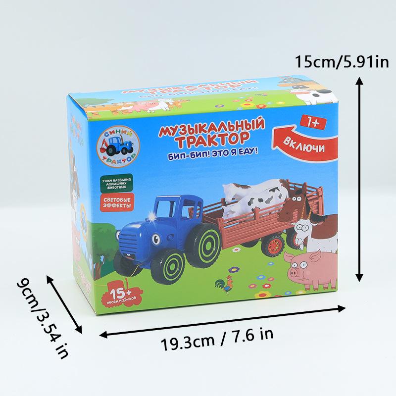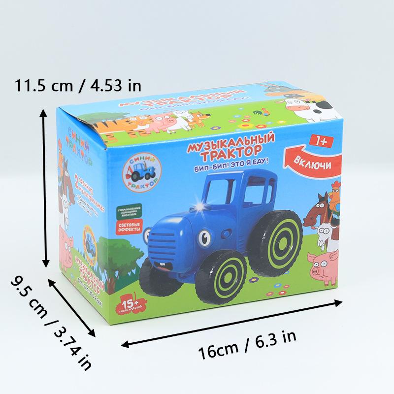 Características del producto: Coche de granjero tractor azul, con 3 pilas de botón incorporadas, con aproximadamente 12-15 canciones rusas, con interruptor de 3 velocidades (apagado, volumen bajo, volumen alto)