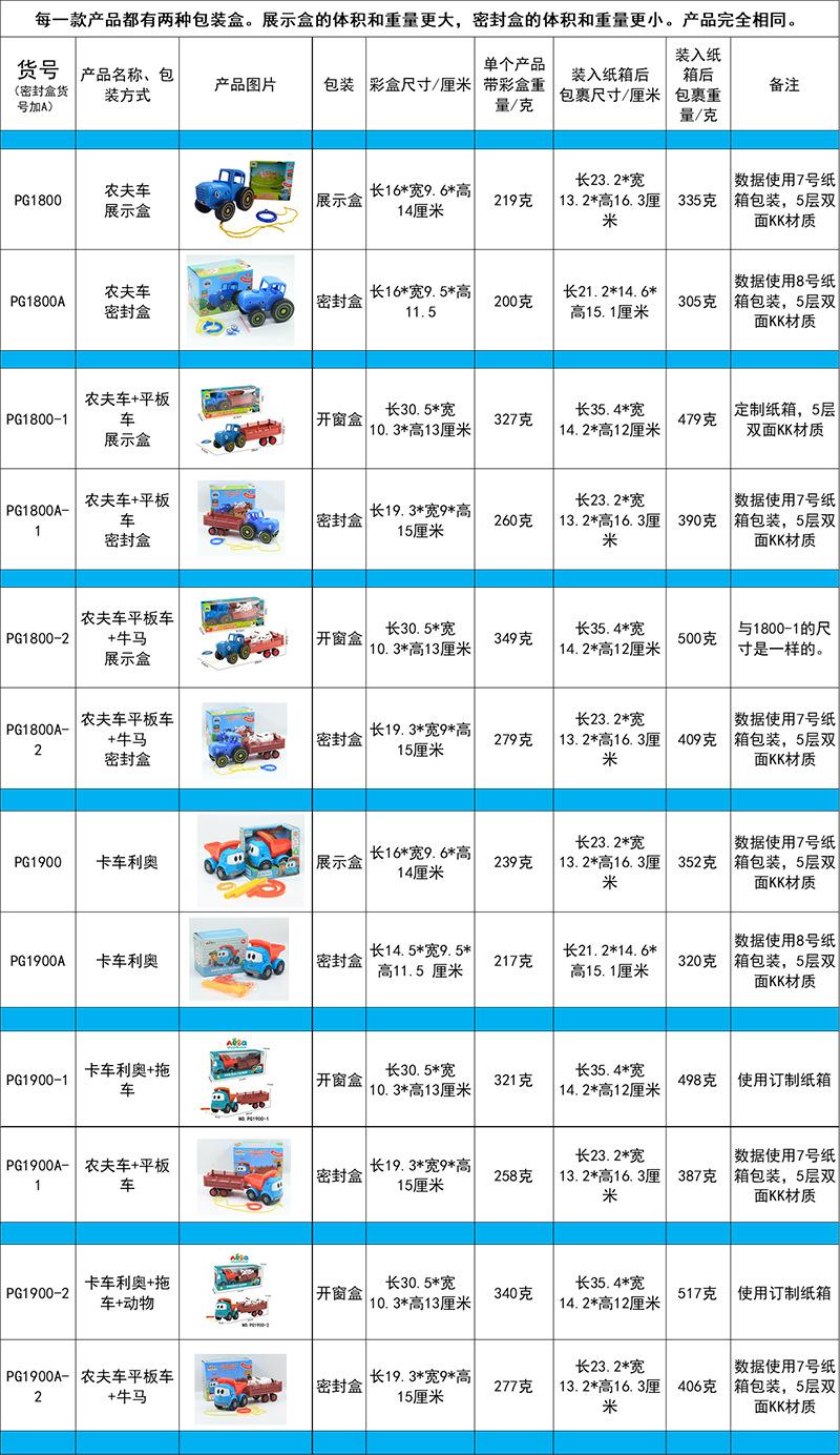 Lista de productos: tractor azul*1, cuerda de arrastre*1.