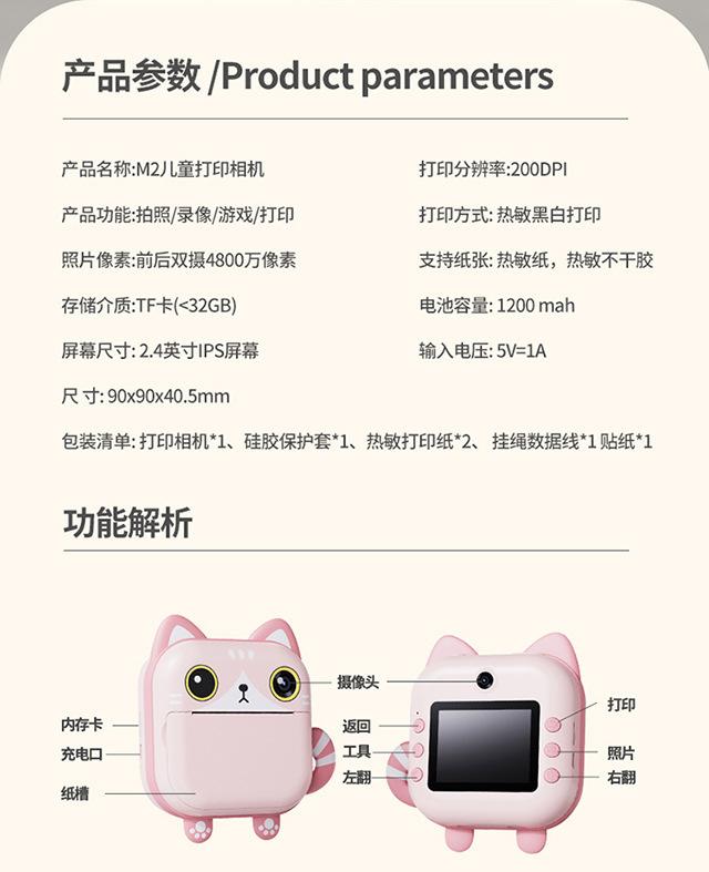Cámara infantil de dibujos animados Mini Polaroid imprimible Linda cámara digital HD para estudiantes