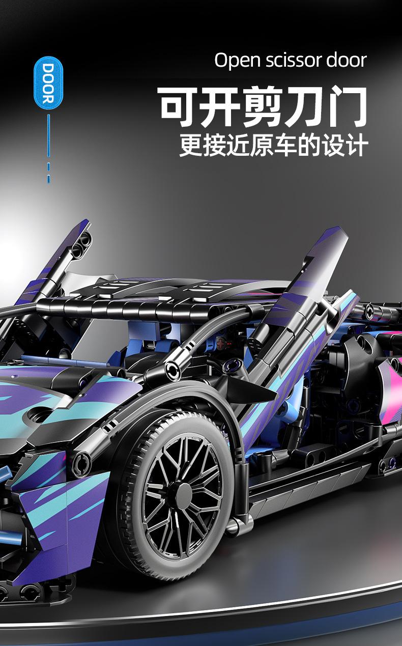 Compatible con Lego - Bloques de construcción de partículas pequeñas de carreras de control remoto Cyberpunk ensamblados para niños, modelo de auto deportivo Boy Rambo