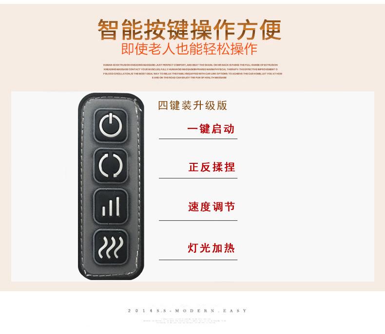 Presione el botón de encendido en la esquina superior izquierda una vez, y el producto entrará en el estado de masaje automático. En este momento, las funciones de masaje amasado y calentamiento se activan simultáneamente. La función de masaje amasado cambiará automáticamente de dirección una vez por minuto para masajear.