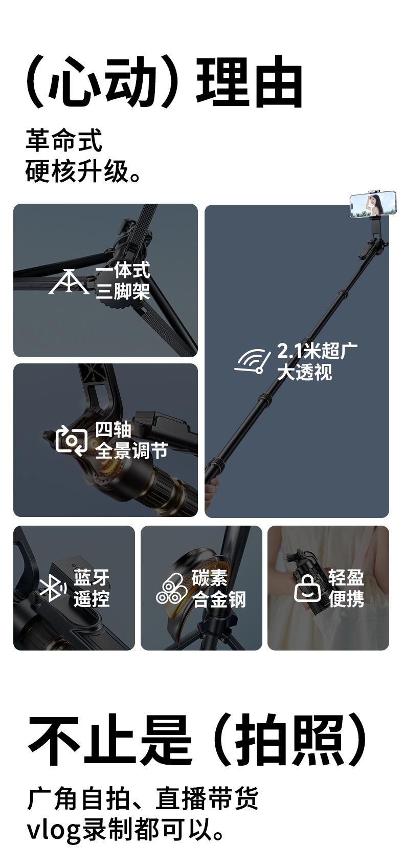 2.1m with remote control + storage bag [carbon steel is more stable ☆ Four-axis universal anti-shake]