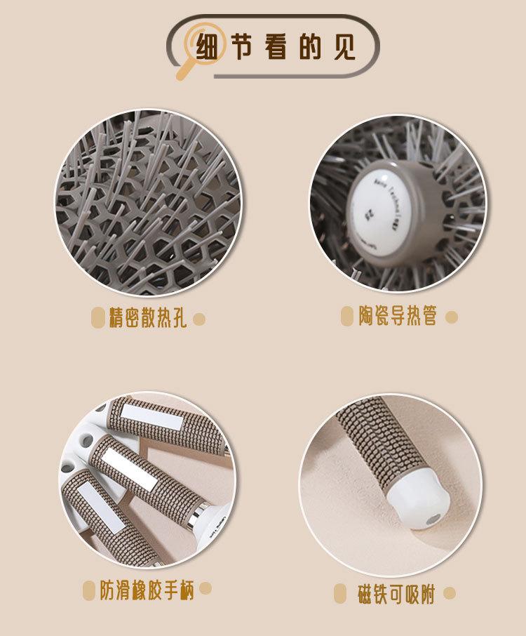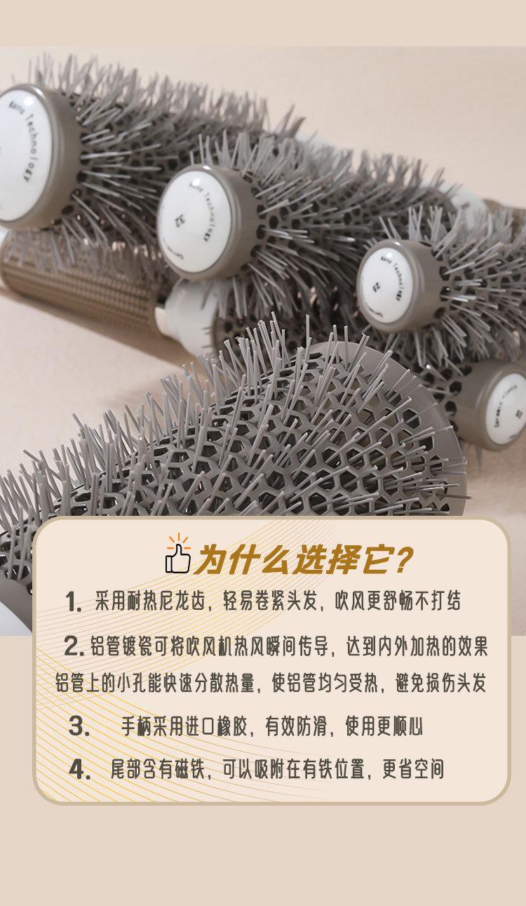 2. El diseño especial de las cerdas no enreda el cabello dañado. El calor del secador de pelo se transfiere a las cerdas, de modo que el cabello se calienta uniformemente y los rizos elásticos son más duraderos.