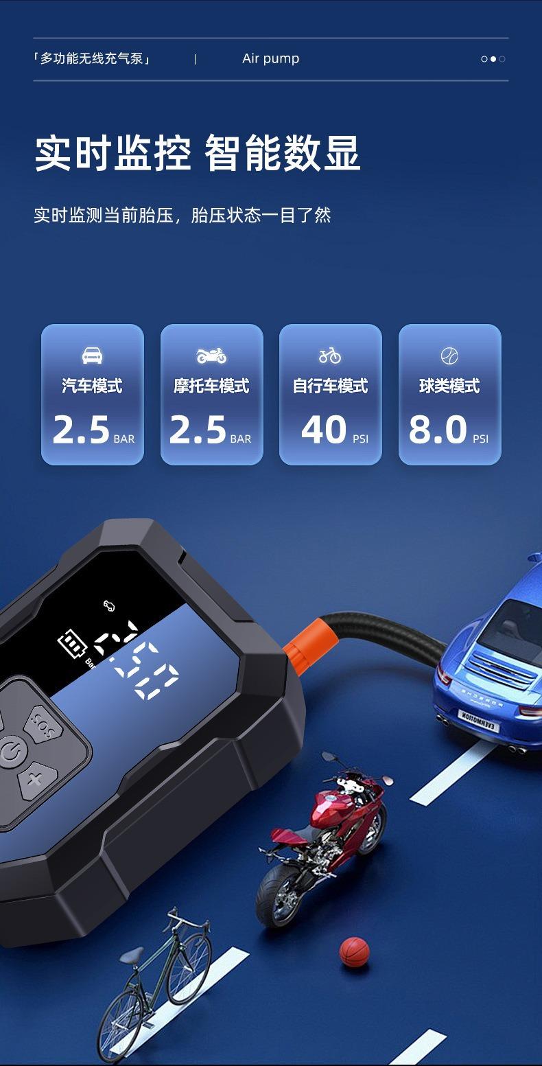 Wireless upgrade dual-use model with power bank [car air pump], Wireless upgrade three-use model with power ba...