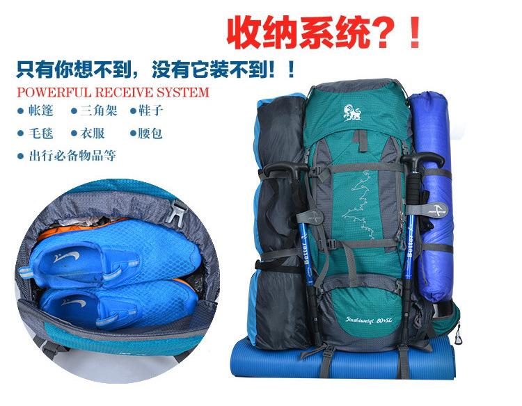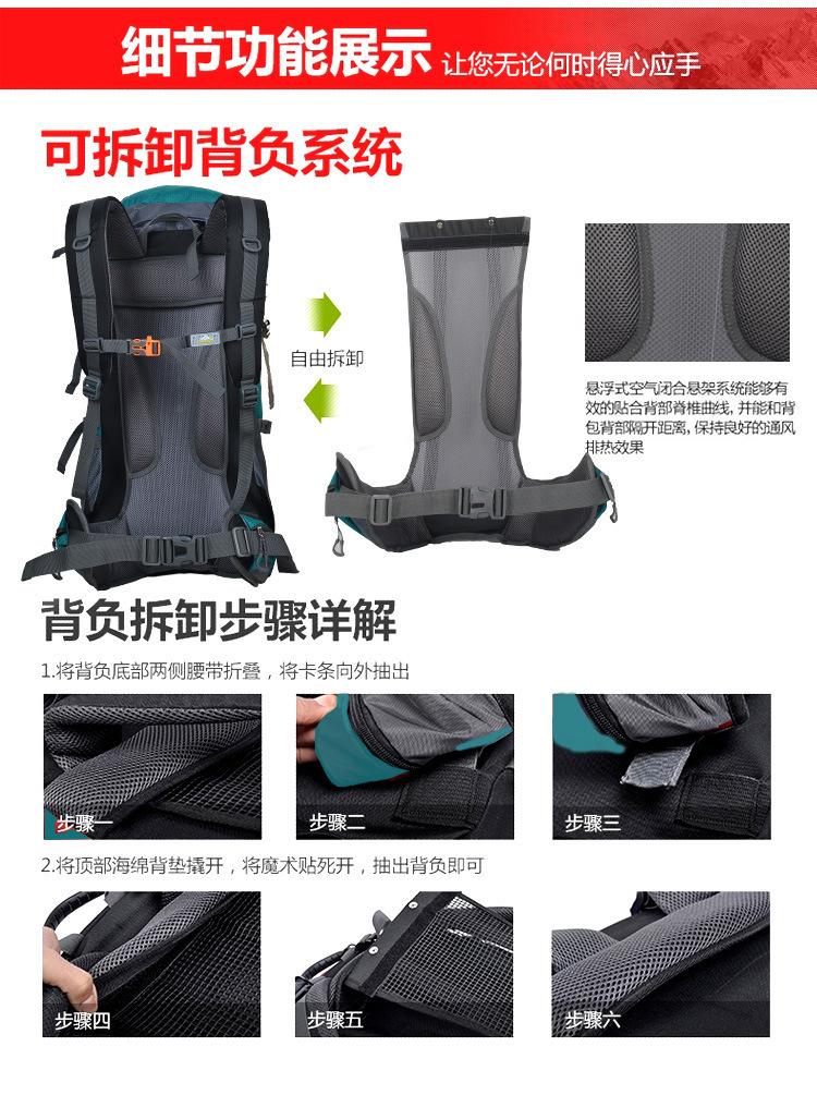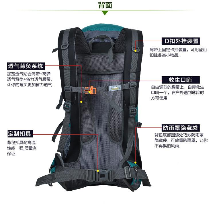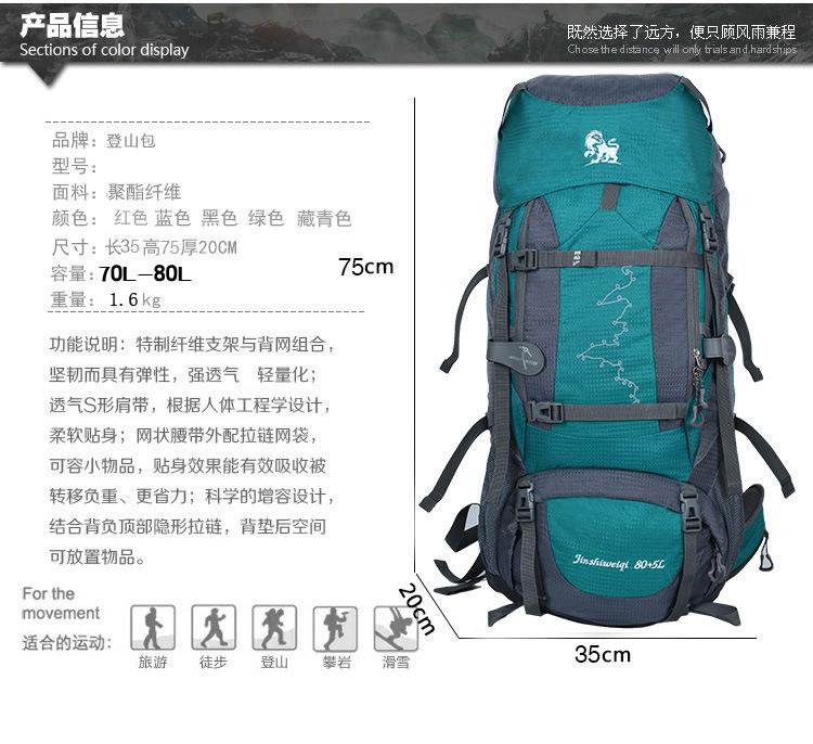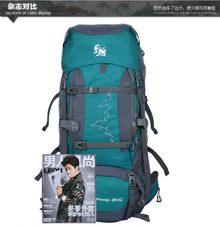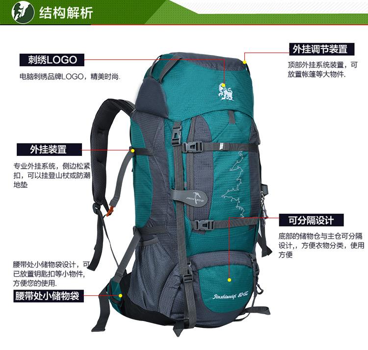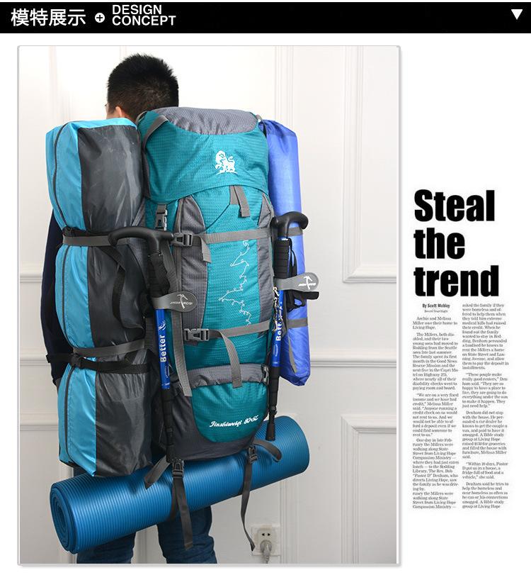 Gran capacidad de 80L Sistema de espalda suspendida Tejido de malla transpirable Robusto y duradero Acabado sólido Buena funcionalidad