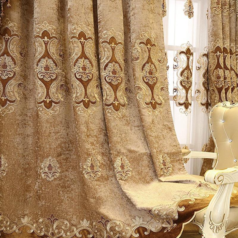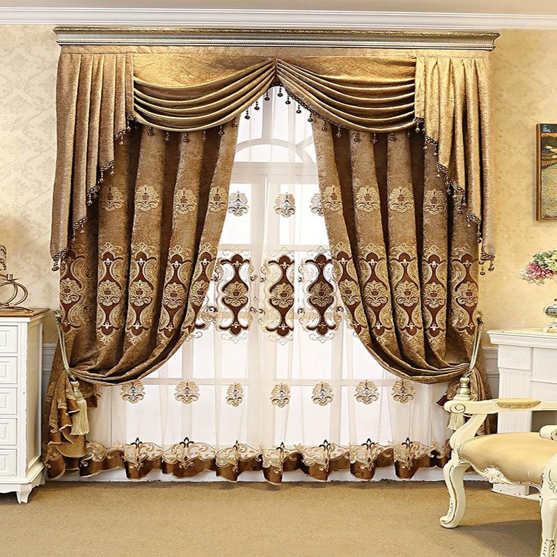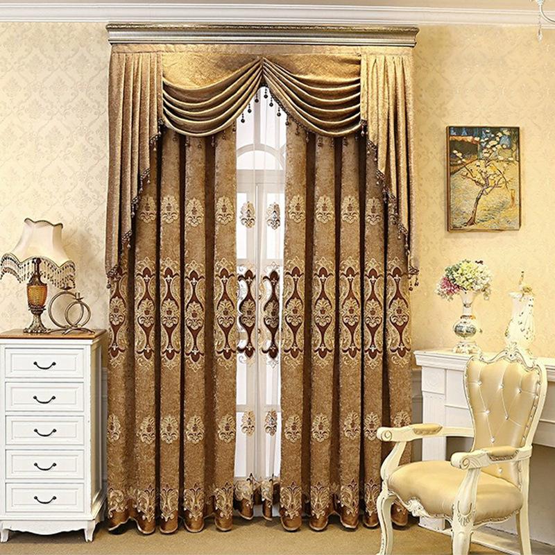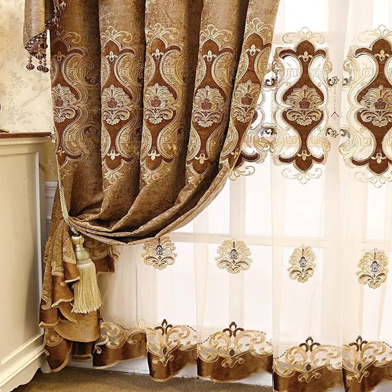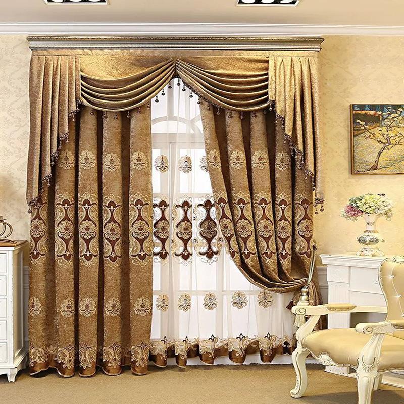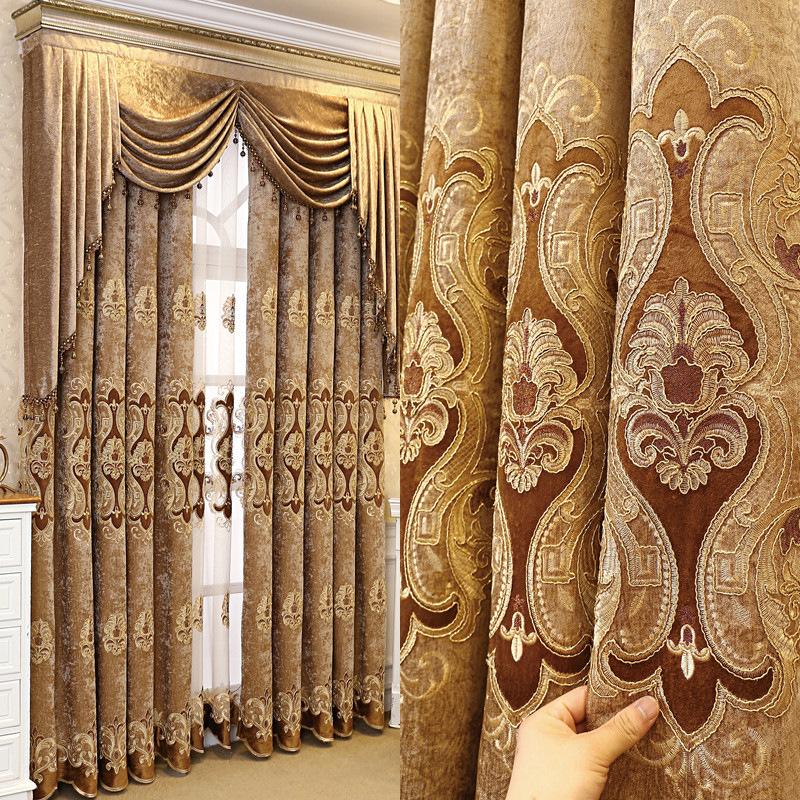 Cortina de lujo de alta gama para sala de estar, dormitorio, sombreado, chenilla europea, tela bordada gruesa, cortina de gasa de lujo, producto terminado
