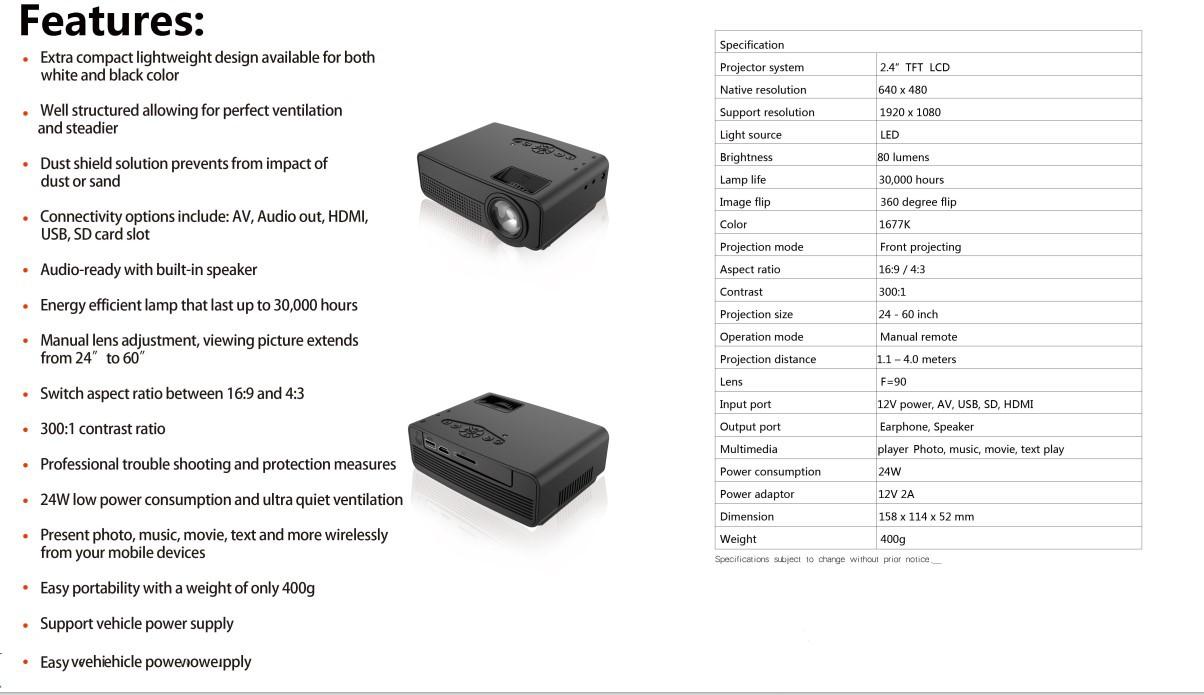 Nuevo proyector LED microportátil S280 para teléfono móvil con conexión directa enchufable para el hogar, compatible con reproducción HD de 1080P