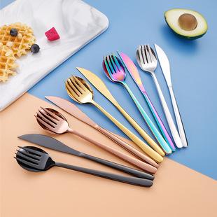 Nuevo cuchillo y tenedor de acero inoxidable con mango de piedra, cuchara creativa occidental para carne, cuchillo y tenedor, cuchara dorada de alta calidad para el hogar.