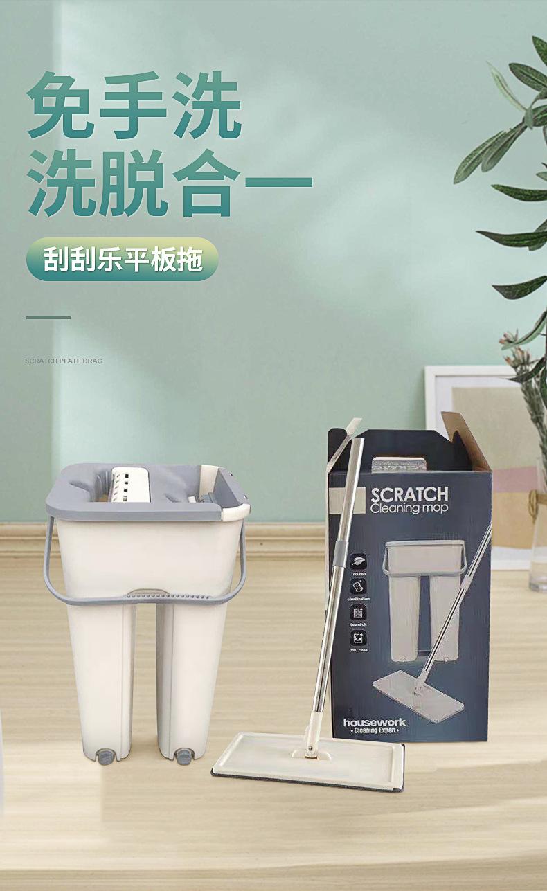 Trapeador de piso giratorio para el hogar, trapeador plano con cubo y fregona giratoria con agua giratoria, con raspado y manos libres