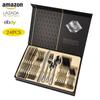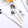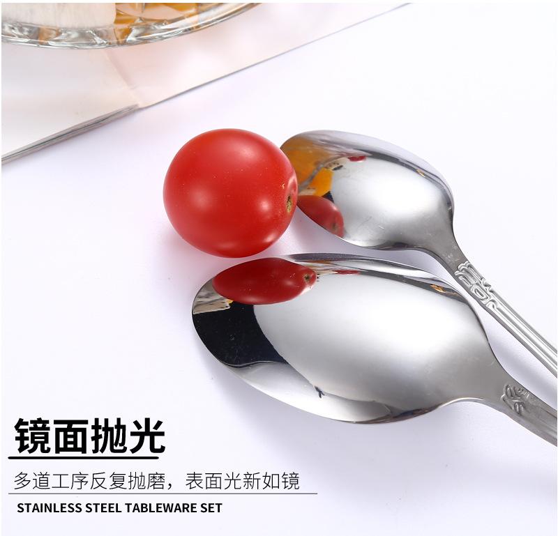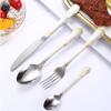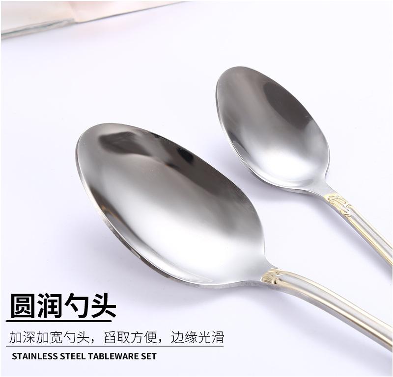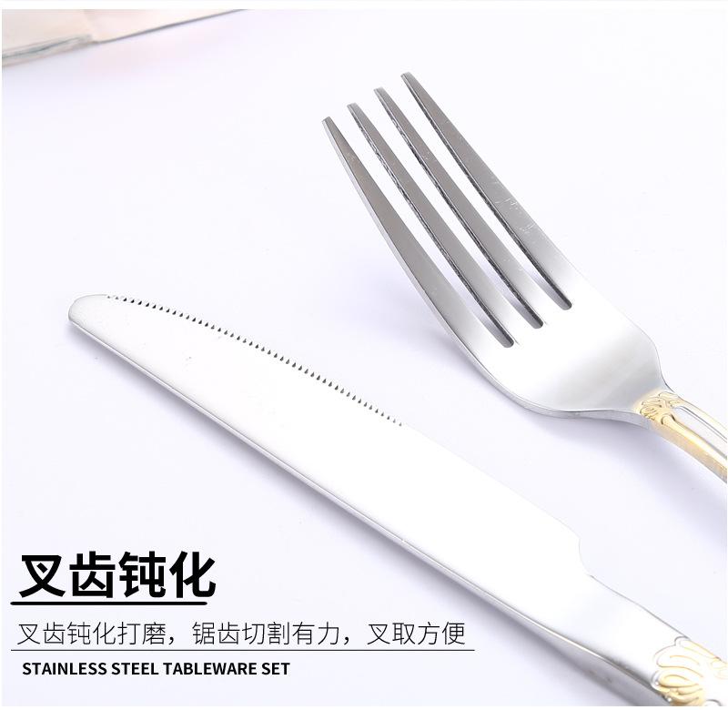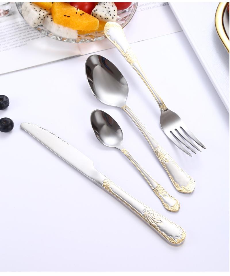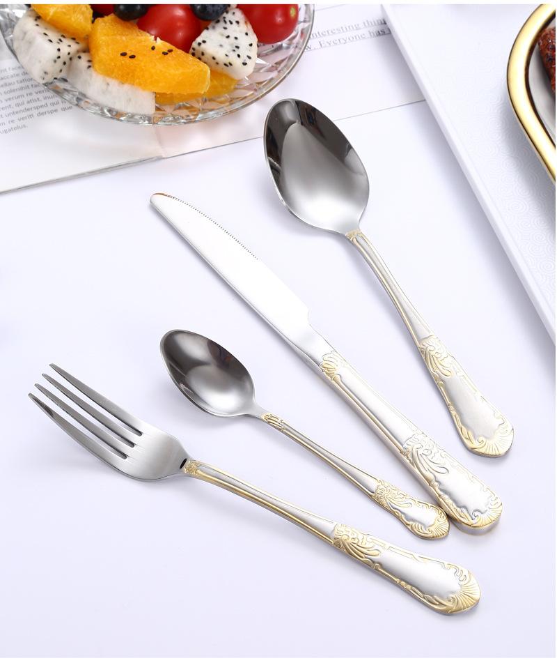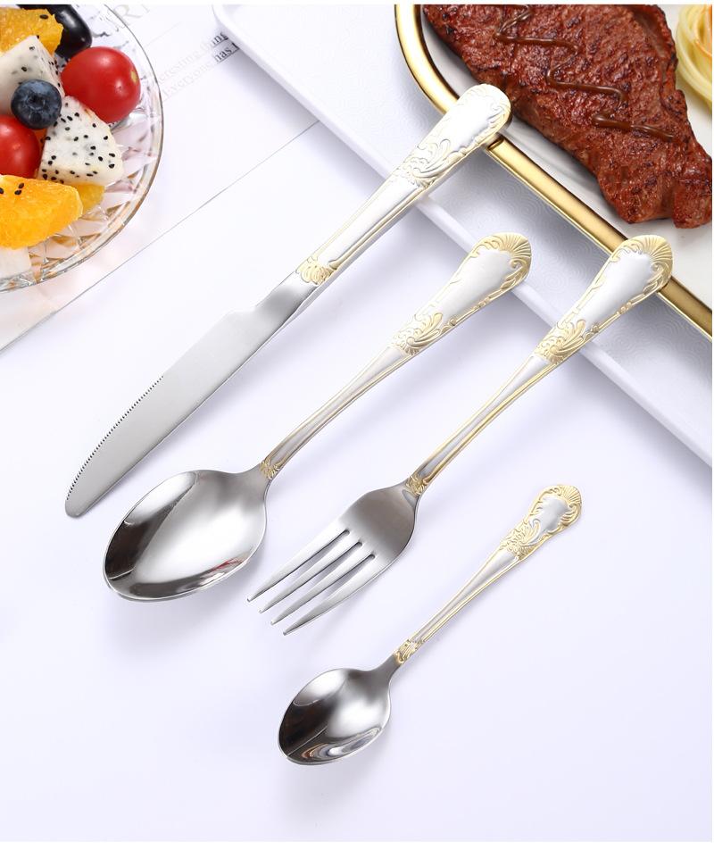 Vajilla de acero inoxidable estilo occidental con cuchillo, tenedor y cuchara de Amazon transfronterizos, juego de cuatro piezas de cuchillo, tenedor, cuchara y cuchara para carne con revestimiento de titanio.