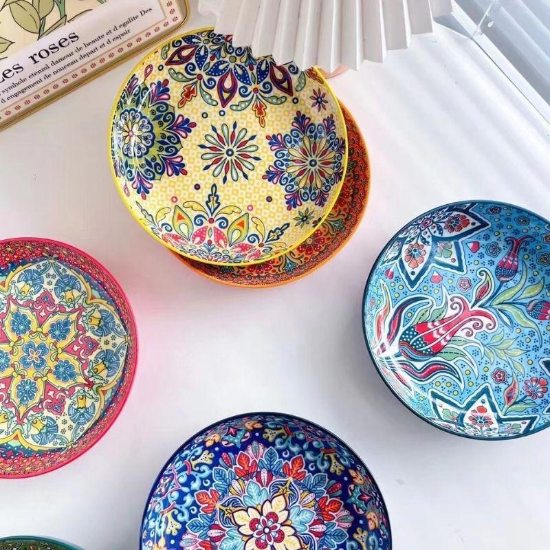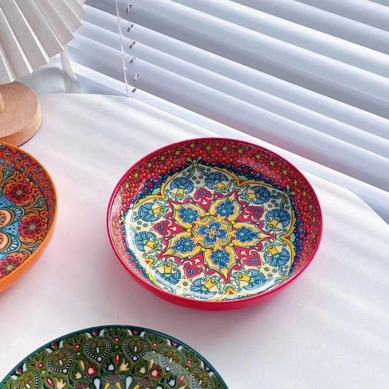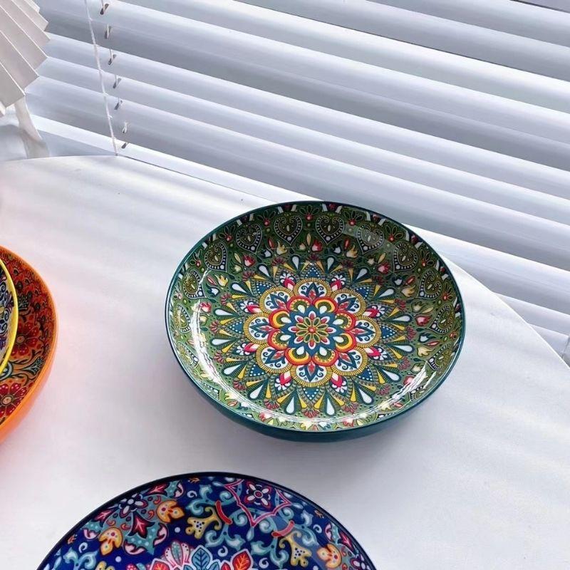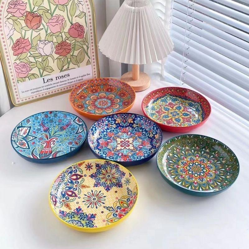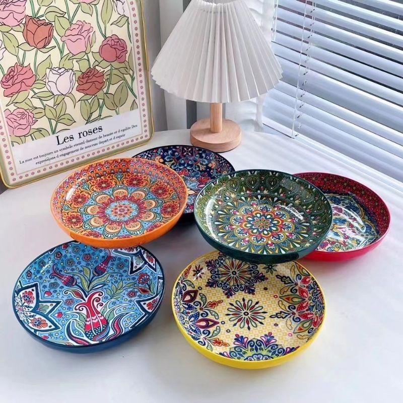 Compra Bohemio Bajo Esmalte Plato Colorido de Verduras Plato de Cerámica Vajilla para el Hogar Plato Hondo para Sopa Plato para Desayuno Postre Regalo de Vacaciones al por mayor en Joom.pro