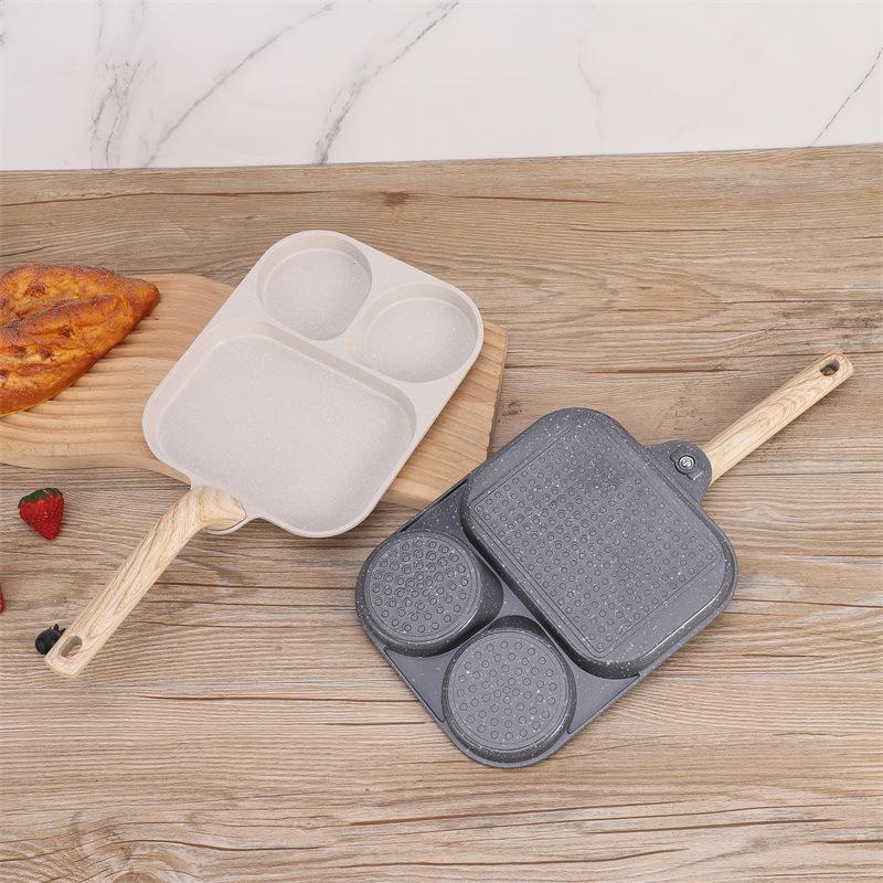 Nuevo artefacto tres en uno para freír huevos, sartén antiadherente para desayuno, sartén plana para hamburguesas, sartén para carne doméstica