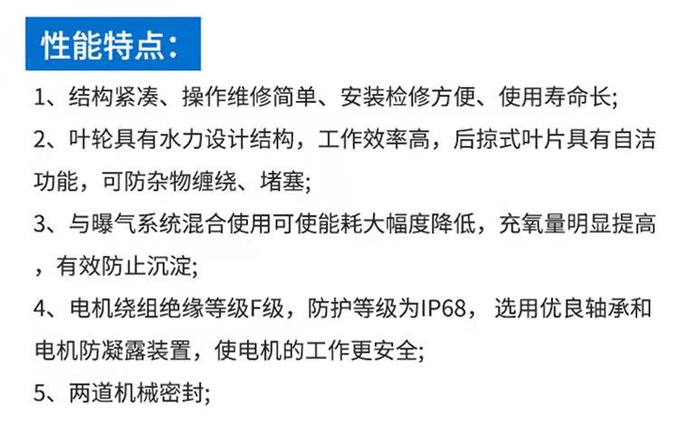 1. Características de rendimiento del mezclador sumergible de fundición QJB
