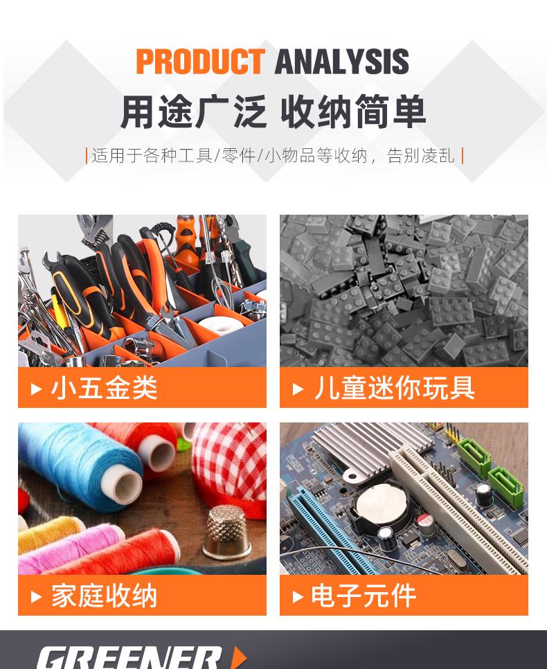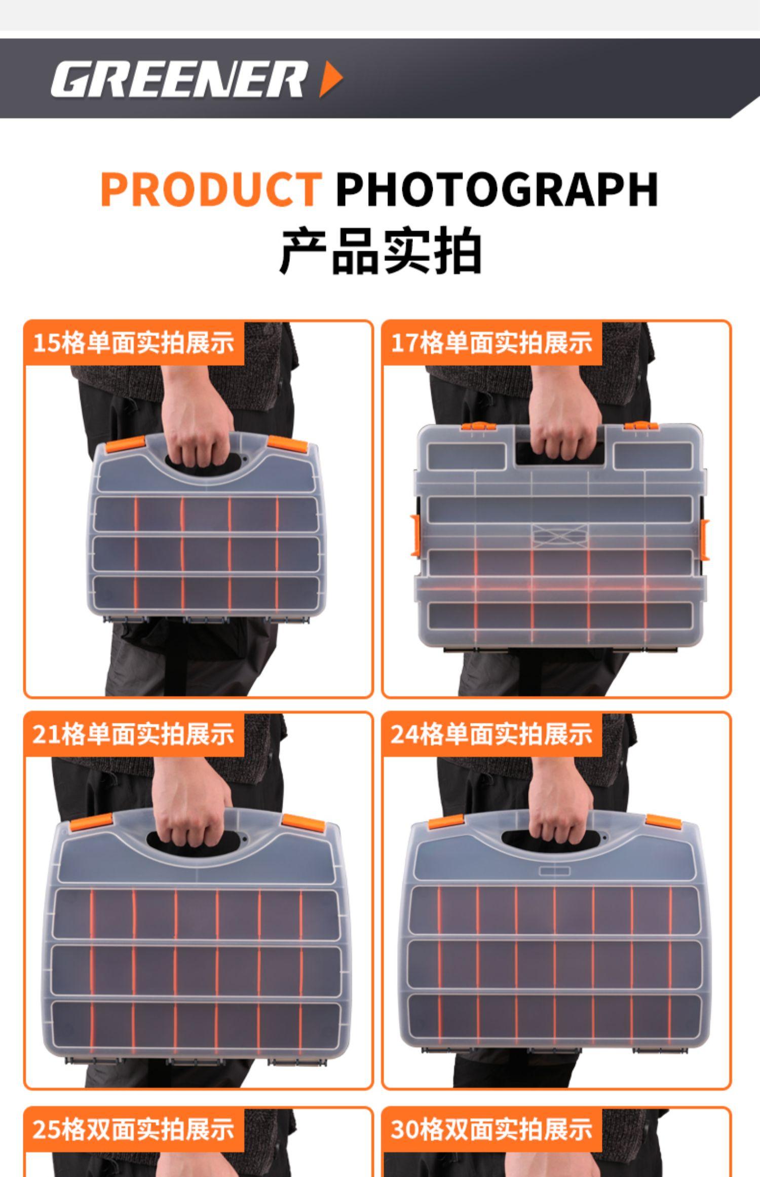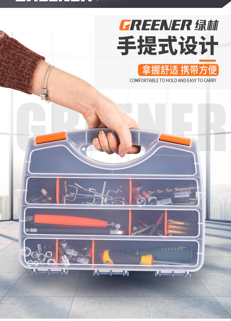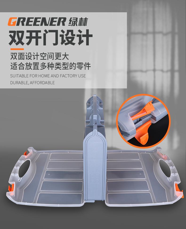 Caja de accesorios de plástico de múltiples rejillas de bosque verde al por mayor, caja de piezas, caja de piezas, tornillo, clasificación, almacenamiento, caja pequeña, caja de herramientas, puntos