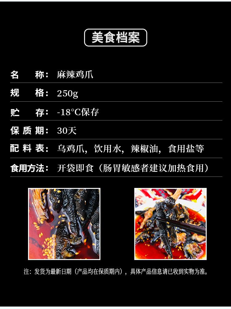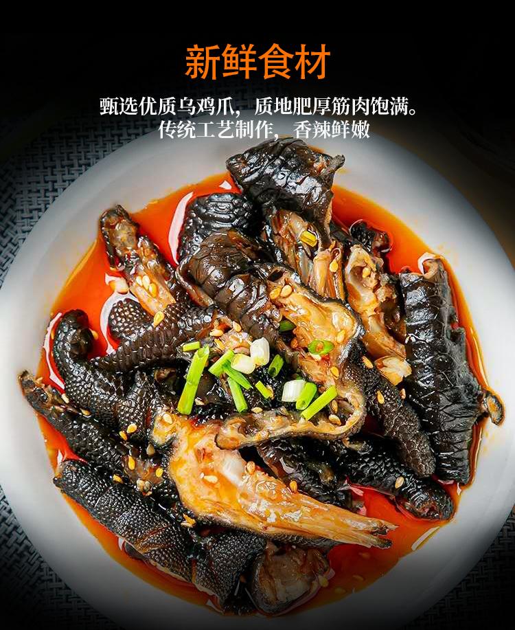 250g Patas de Pollo Negro Deshuesadas Listas para Comer Plato Frío Congelado Semiterminado Patas de Pollo Deshuesadas Picantes Patas de Pollo con Pimienta de Ratán