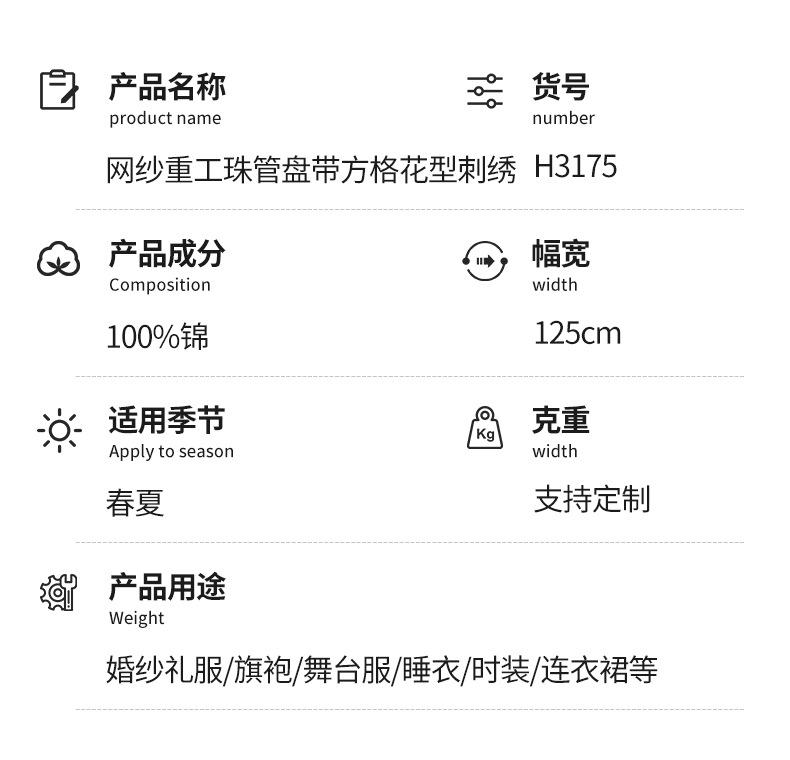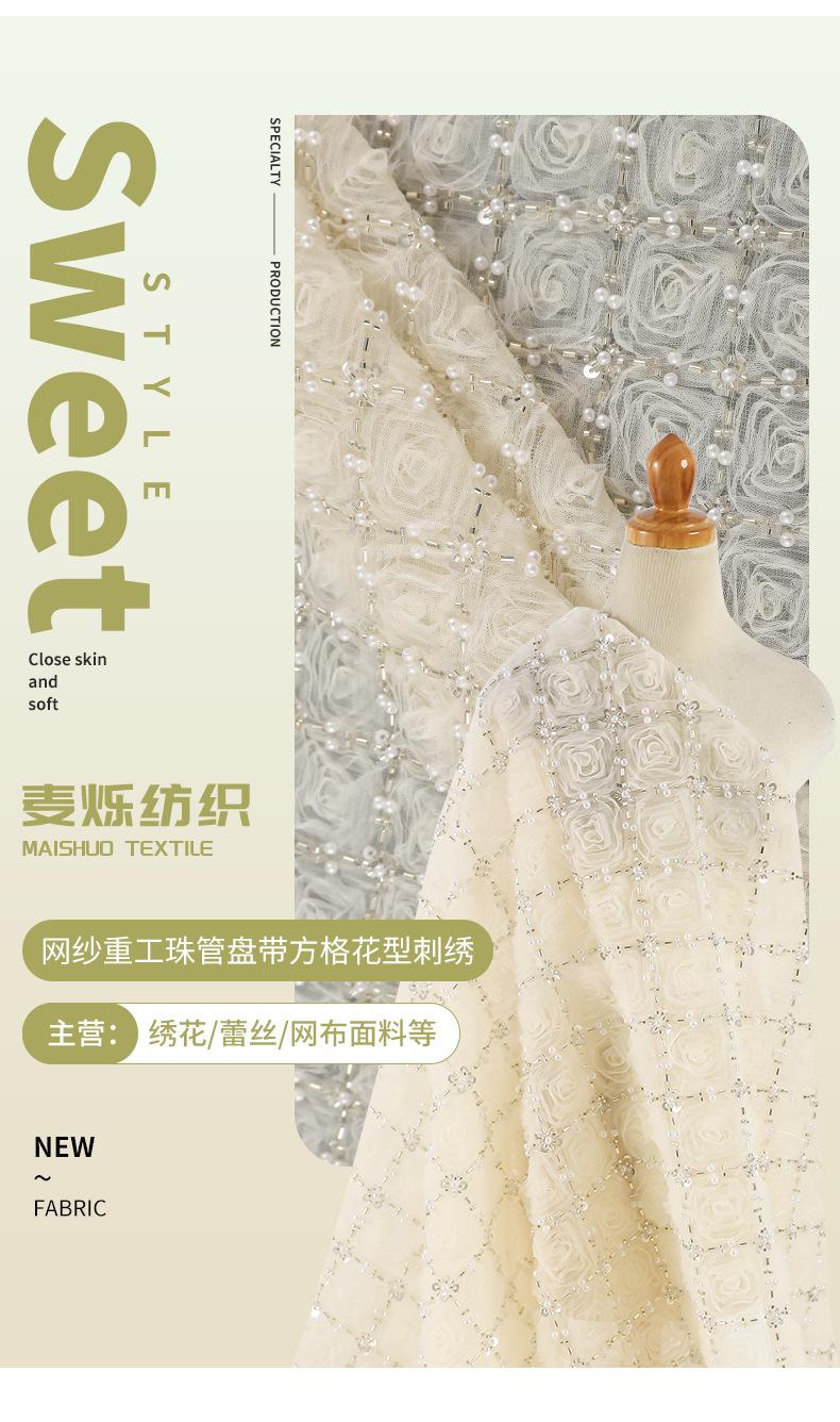 Pesado Tubo de Cuentas Anillado Bordado Patrón Cuadrado Bordado Malla Algodón Puro Vestido de Novia Vestido de Escenario Tejido