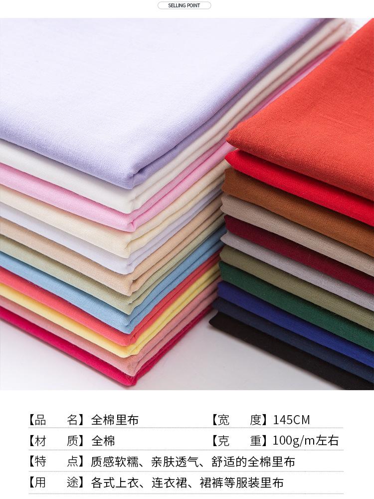 Forro de algodón puro Forro de tela de algodón Forro blanco Forro de falda Tela de tela Tratamiento de cabeza
