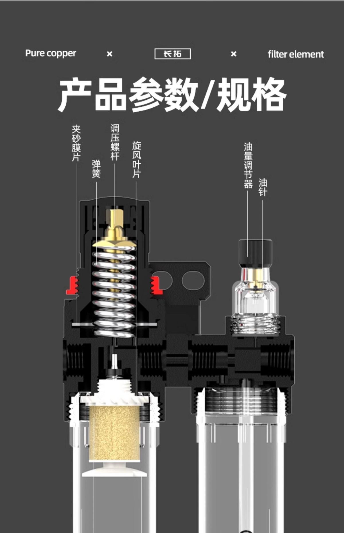 Procesador de fuente de aire AFC2000, separador de aceite y agua con drenaje automático, válvula reguladora de presión de aire, filtro de compresor de aire