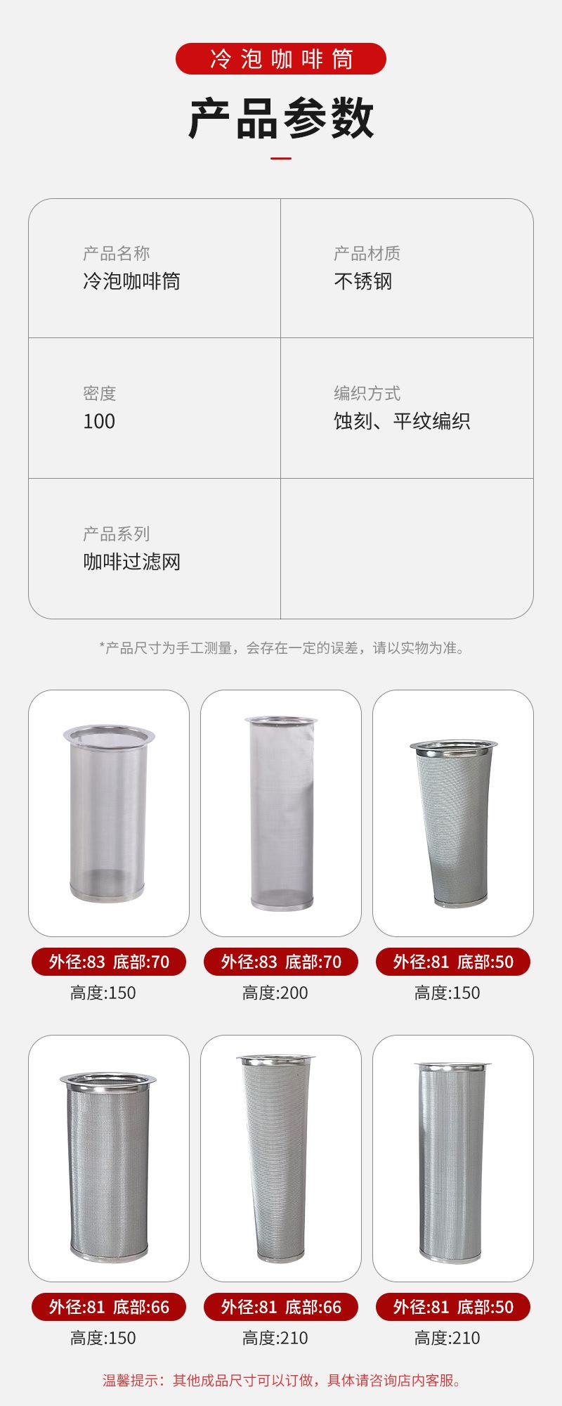 Venta al por mayor de fábrica Malla de filtro de café de acero inoxidable 304 Malla de filtro de acero inoxidable Malla de filtro de café Cold Brew Elemento filtrante