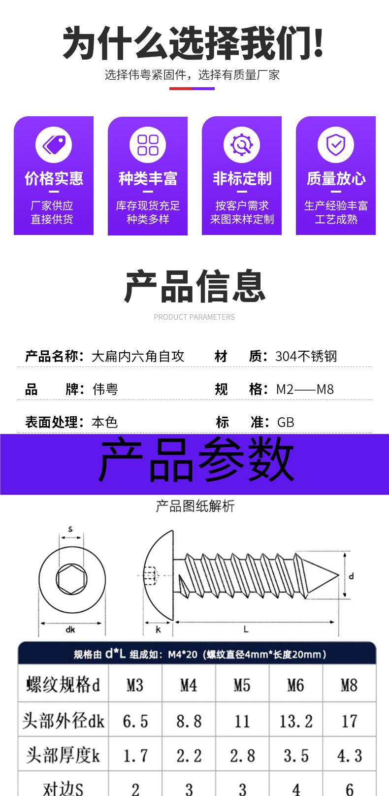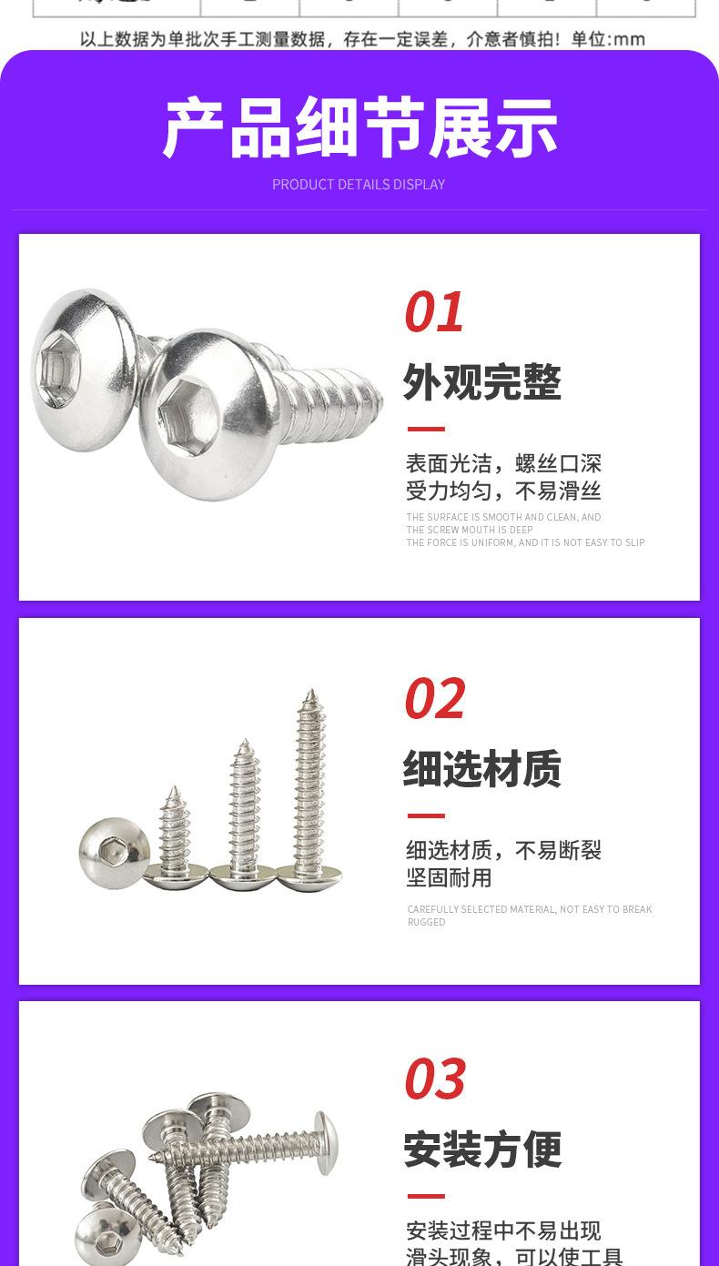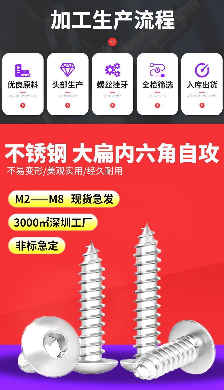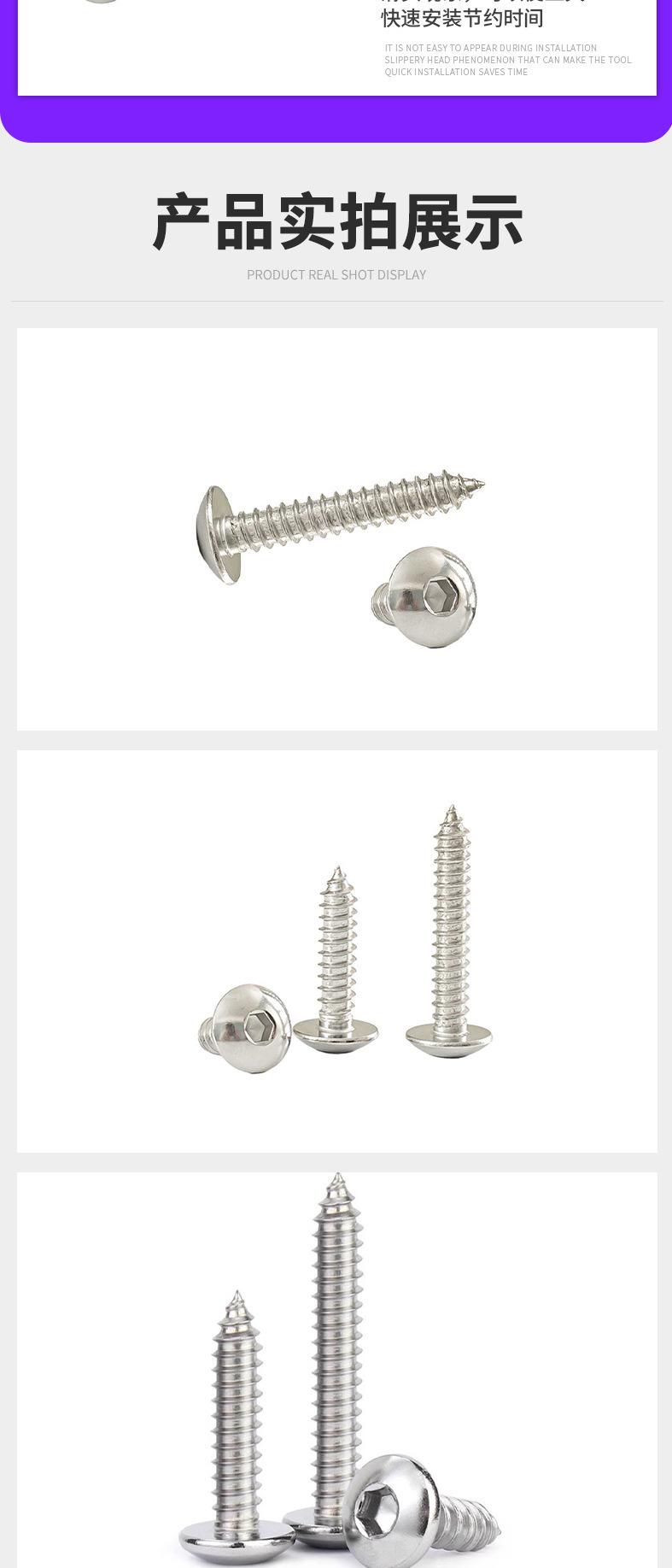 Tornillo autorroscante de cabeza hexagonal plana grande de acero inoxidable 304, cabeza de hongo, cabeza de paraguas, tornillo para madera de cabeza redonda grande M3M4M5M6