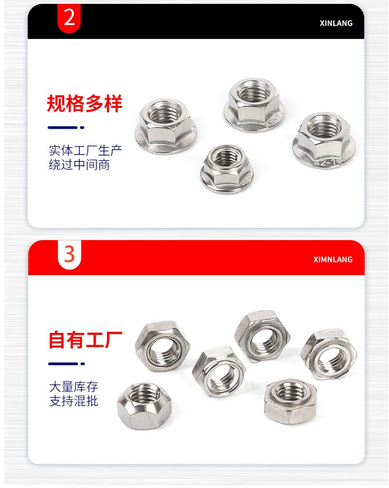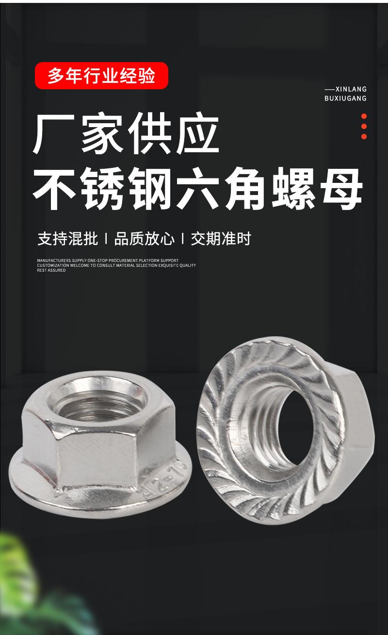 Tuerca de brida de acero inoxidable 304 en stock, tuerca hexagonal dentada antideslizante, tuerca de brida hexagonal dentada de acero inoxidable