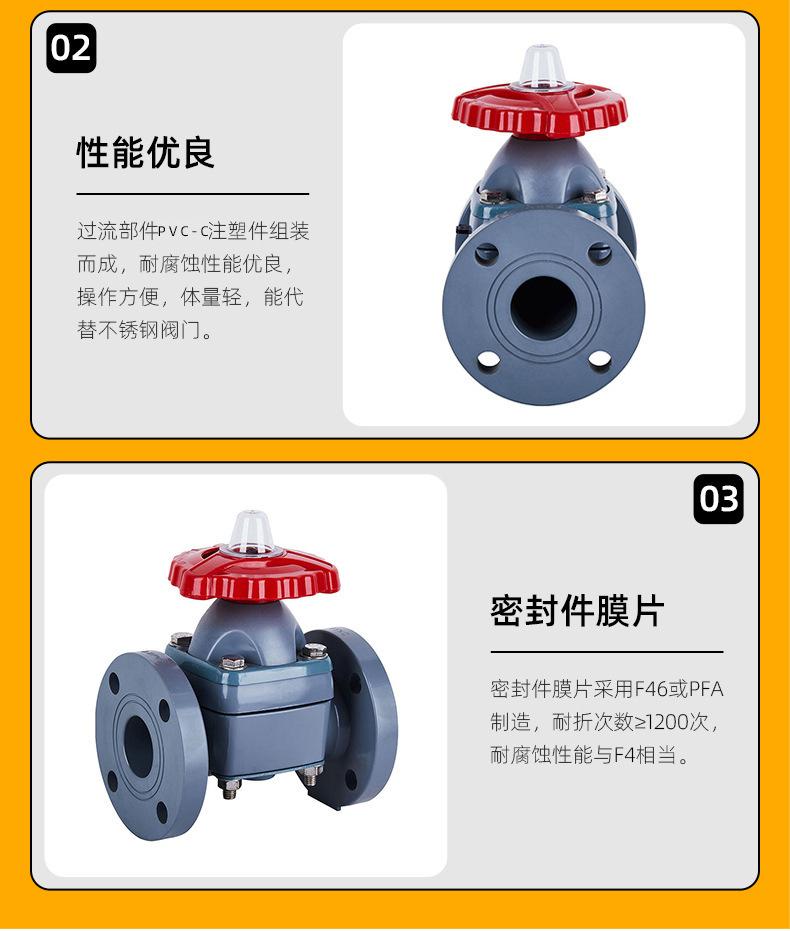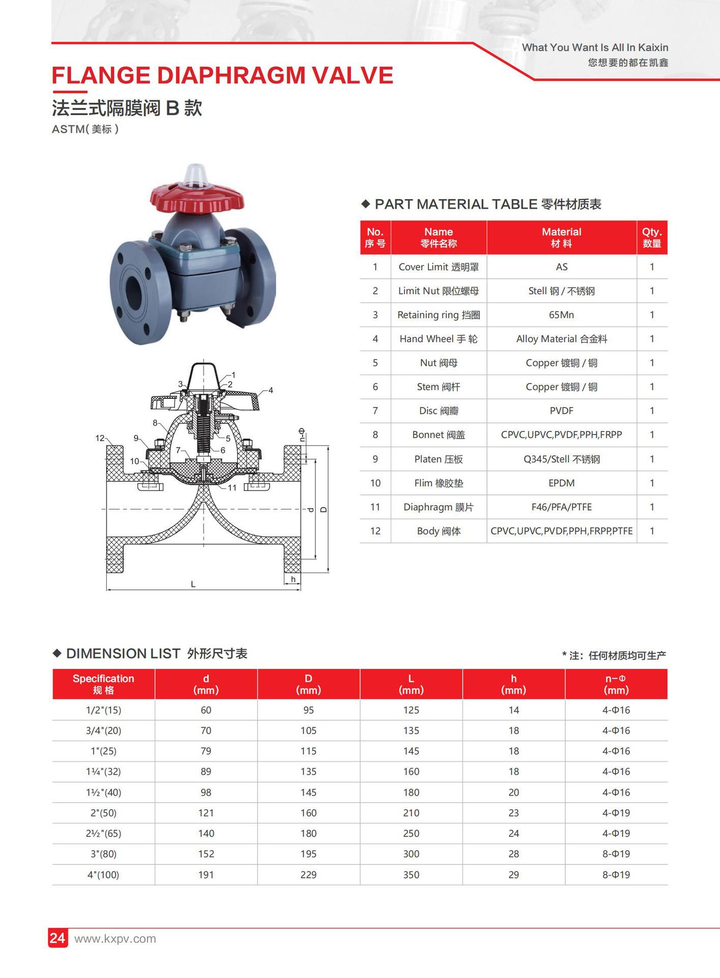 Válvula de diafragma de PVC-C al por mayor de la fábrica Kaixin KXPV, válvula de diafragma de brida CPVC, válvula industrial de plástico, estándar americano