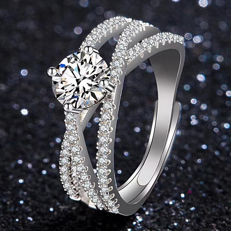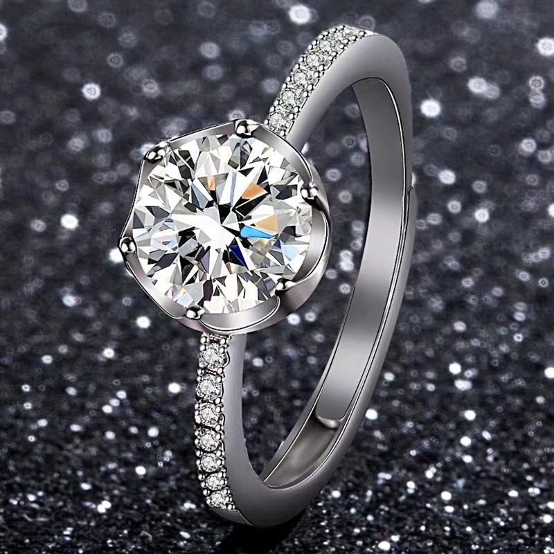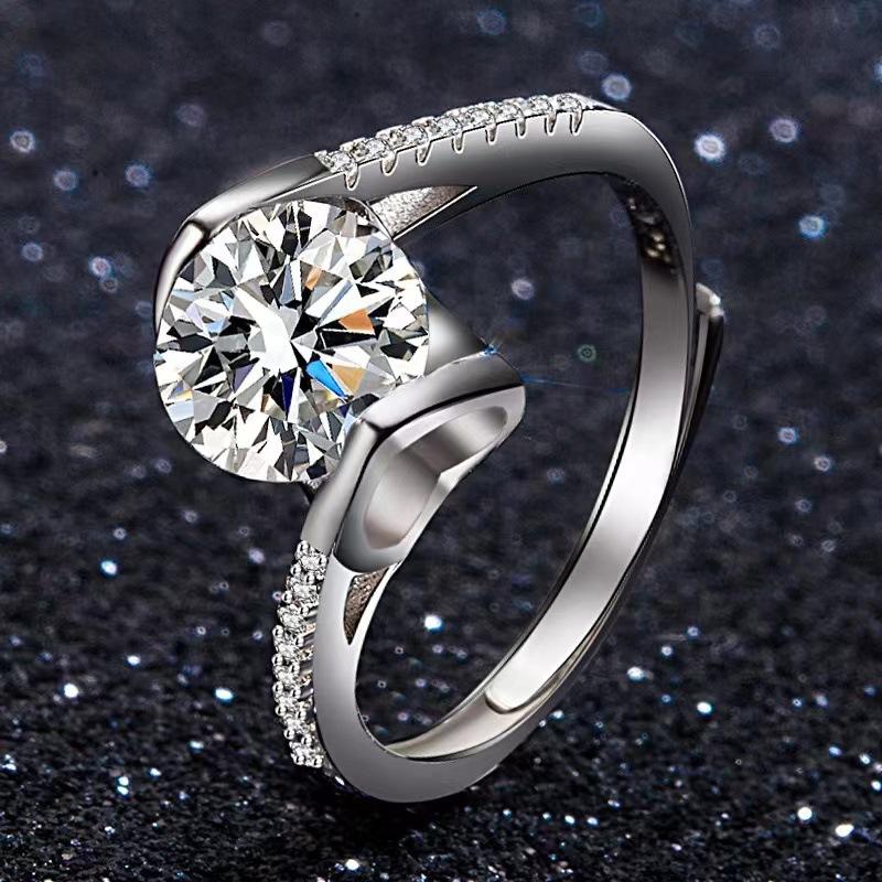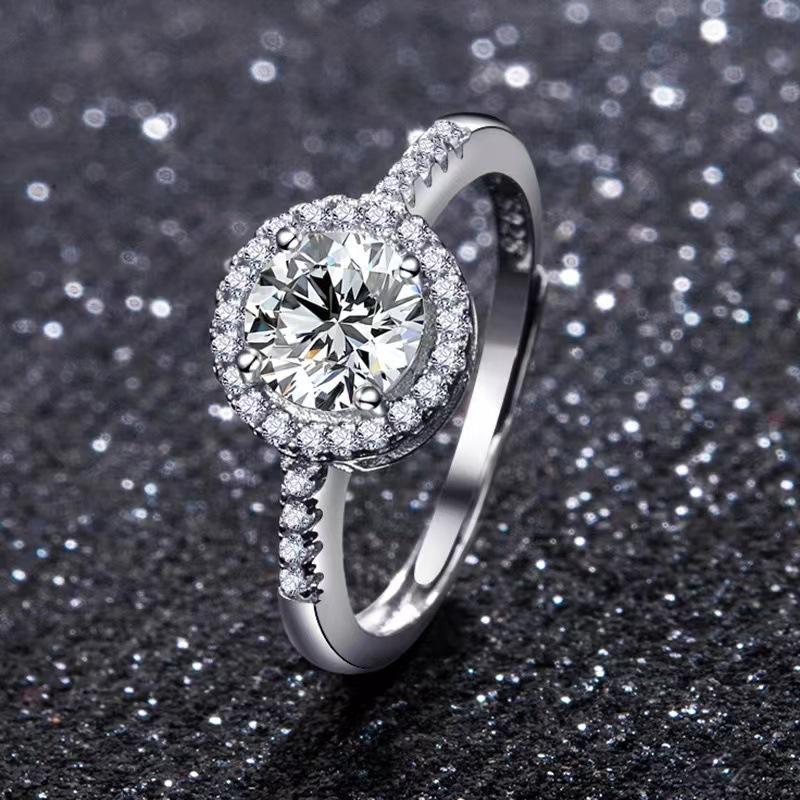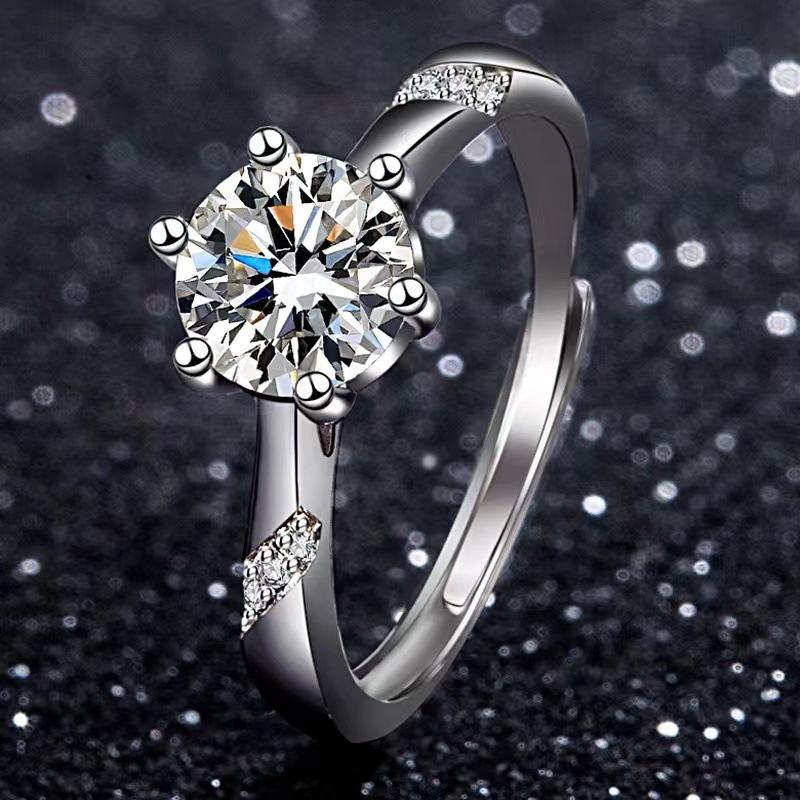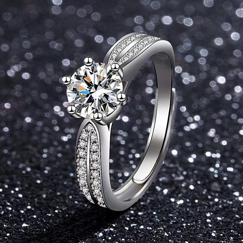 Anillo de moissanita con diamantes para mujer, propuesta de matrimonio, lujoso, atmosférico, ajustable, clásico, 1 quilate, venta al por mayor