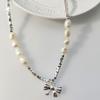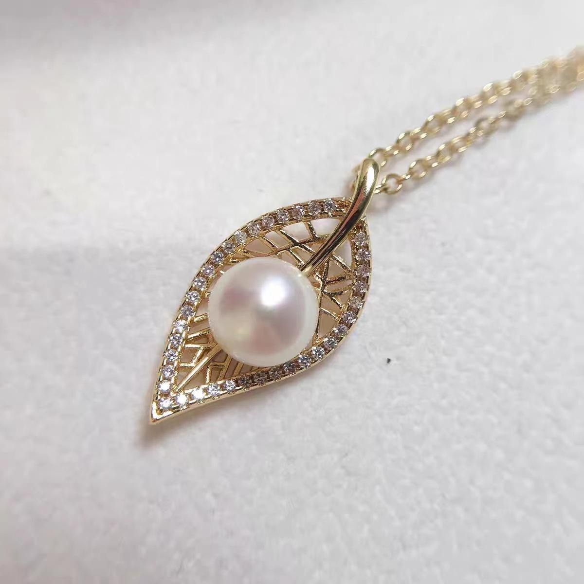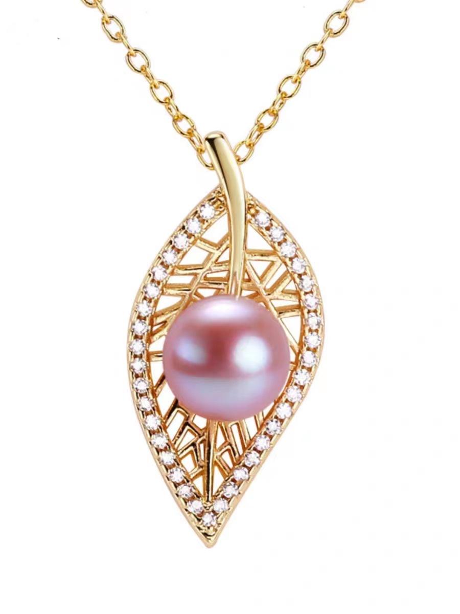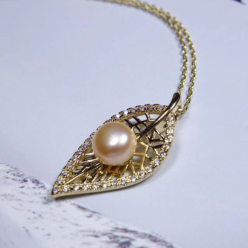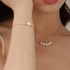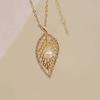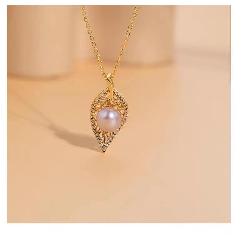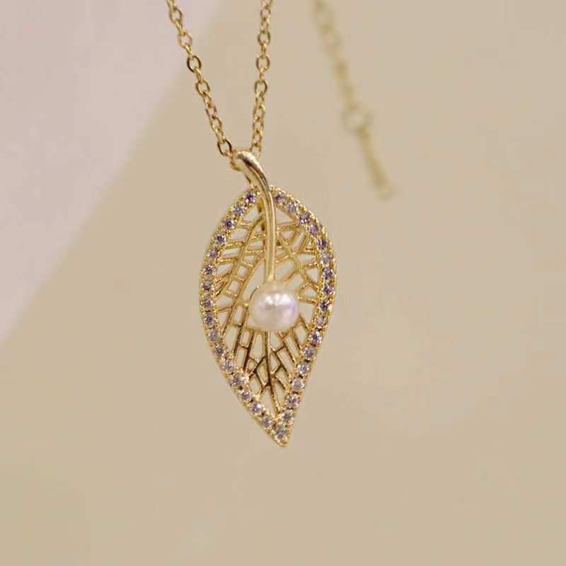 Collar de perlas de agua dulce nuevas europeas y americanas con hoja de oro bañada en cobre, cadena de clavícula ligera de lujo a la moda que combina con todo.