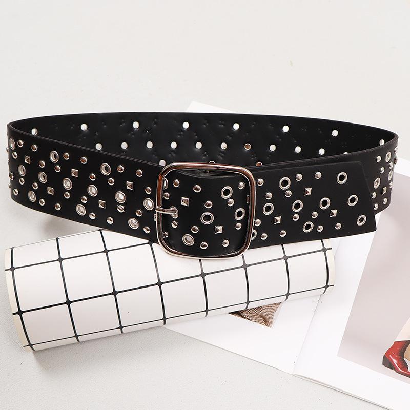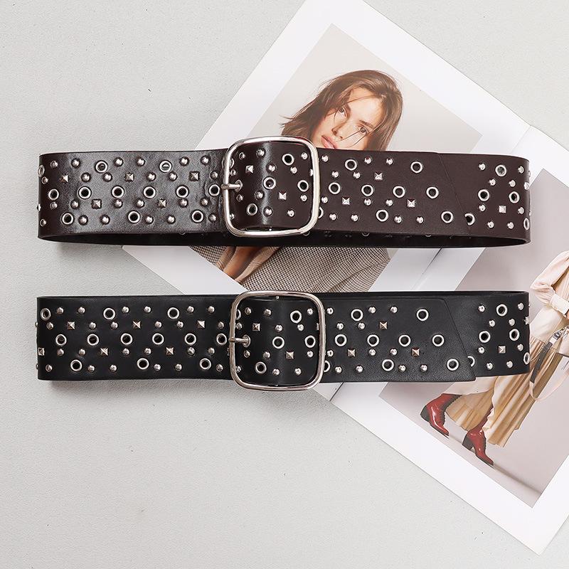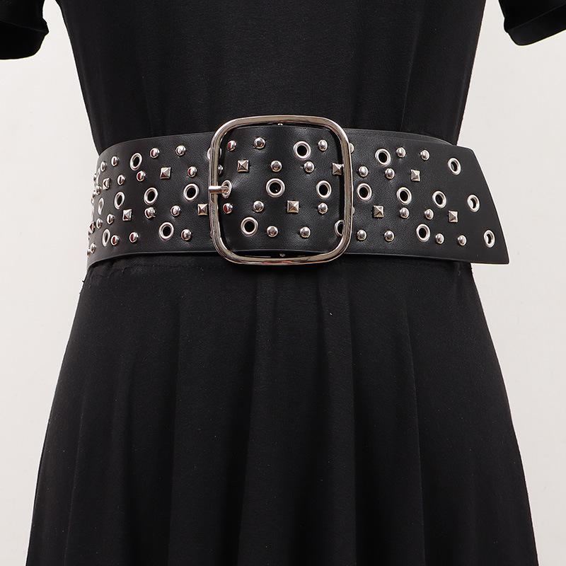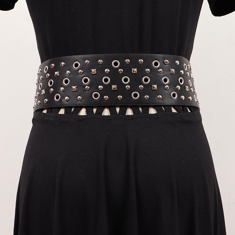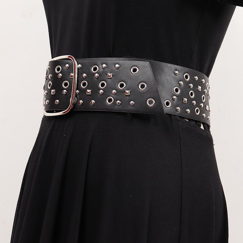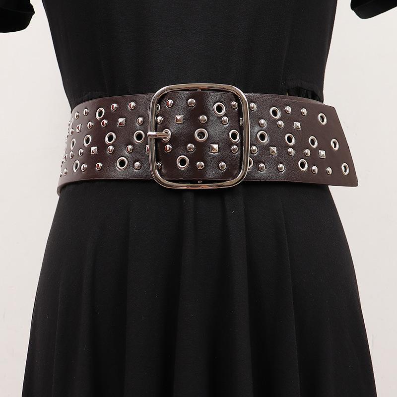 Cinturón ancho de remaches estilo punk para mujer, diseño de industria pesada, personalidad, sello de cintura, accesorios decorativos para vestido, cinturón de cintura