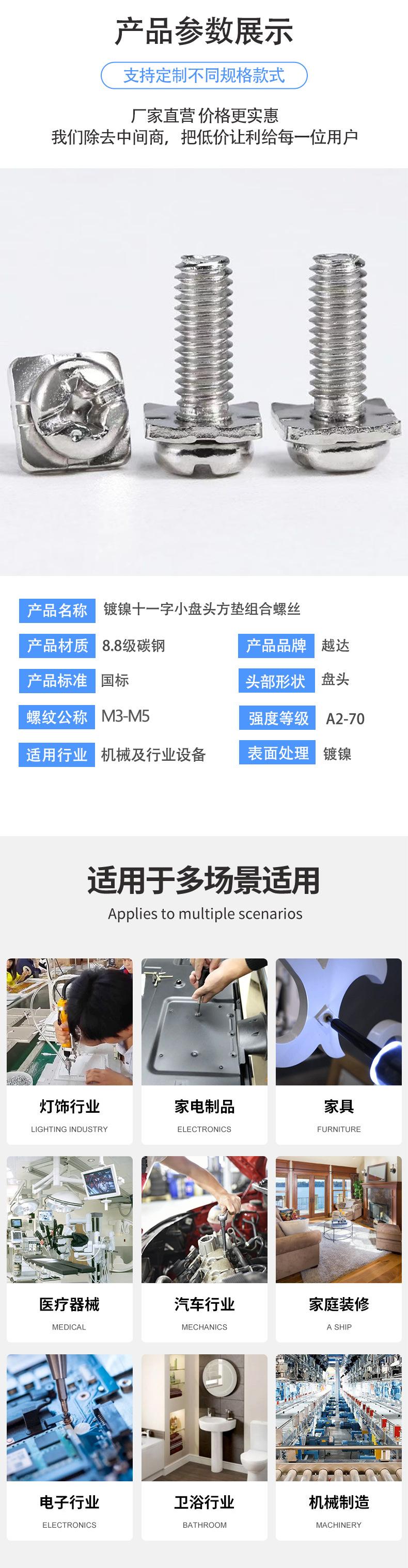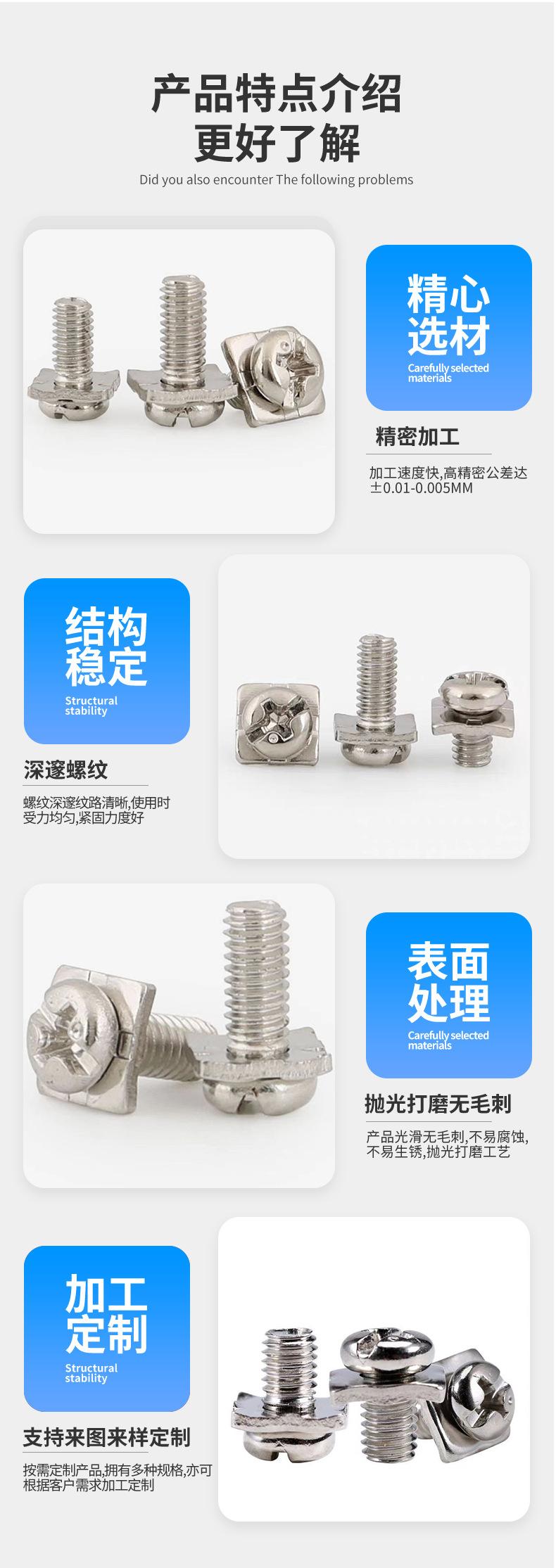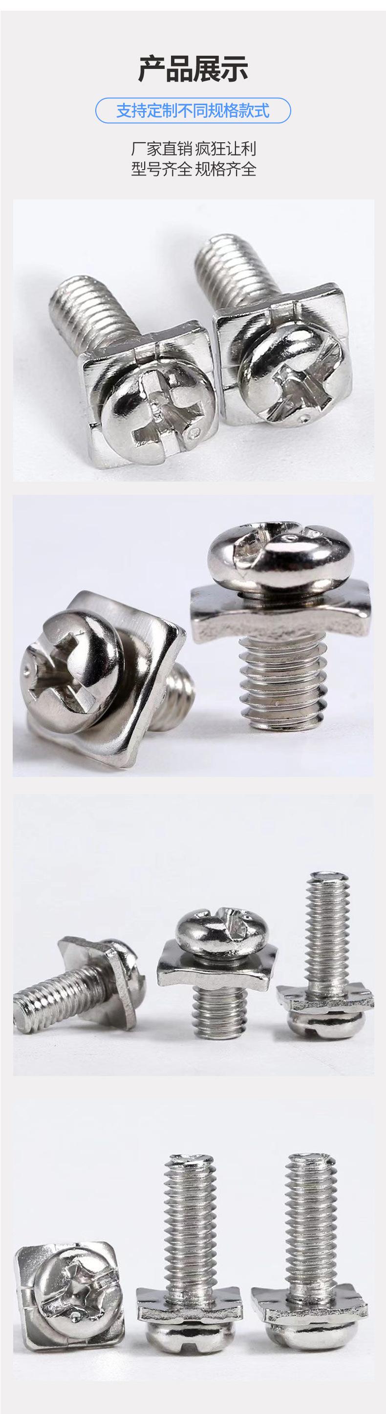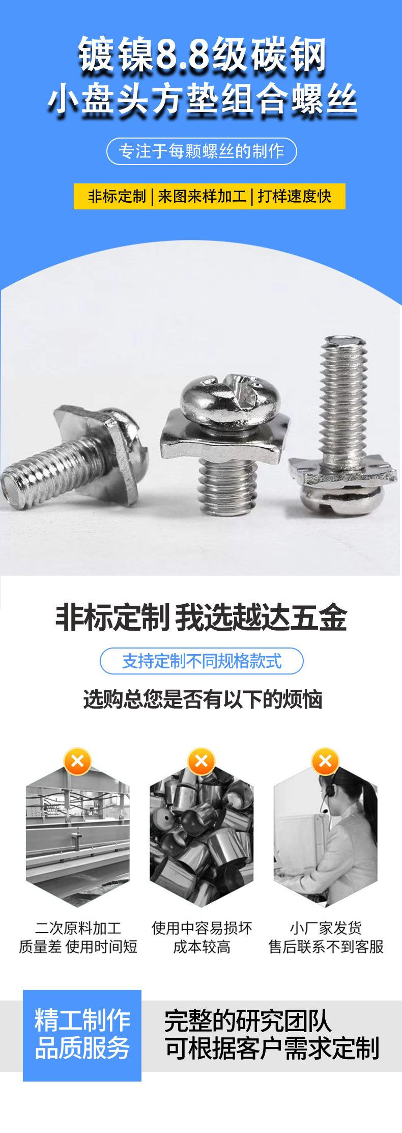 Tornillo combinado de cabeza pequeña de once palabras con arandela cuadrada, niquelado, cabeza redonda con arandela cuadrada, M3M3.5M4M5