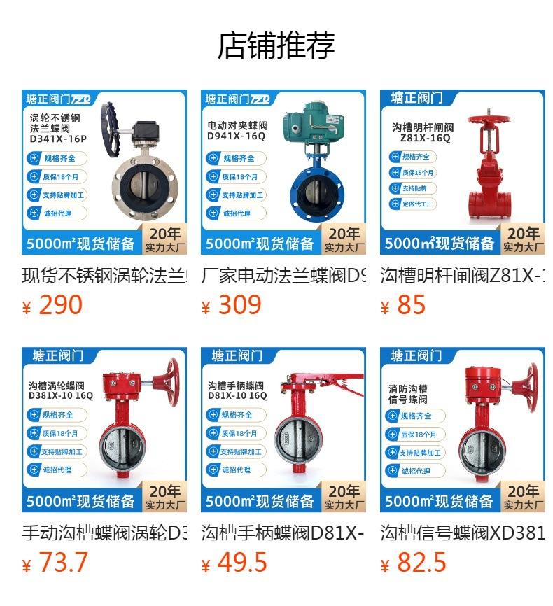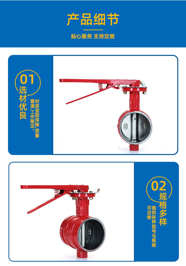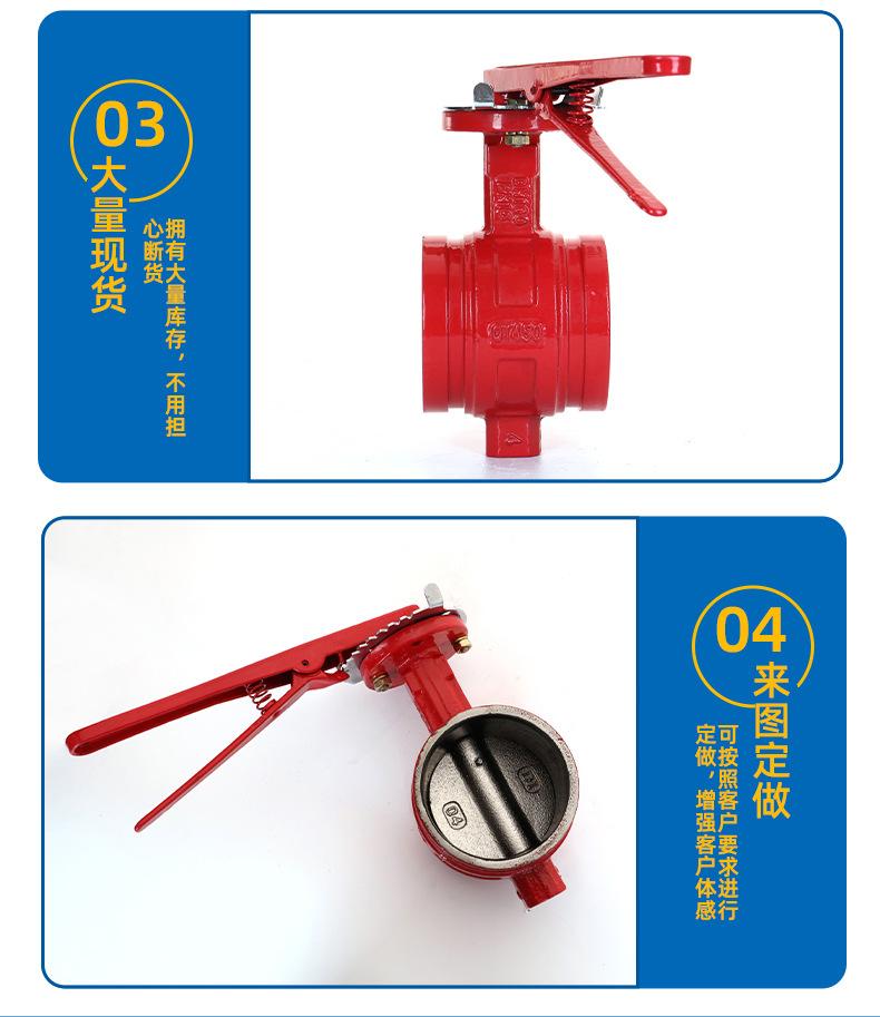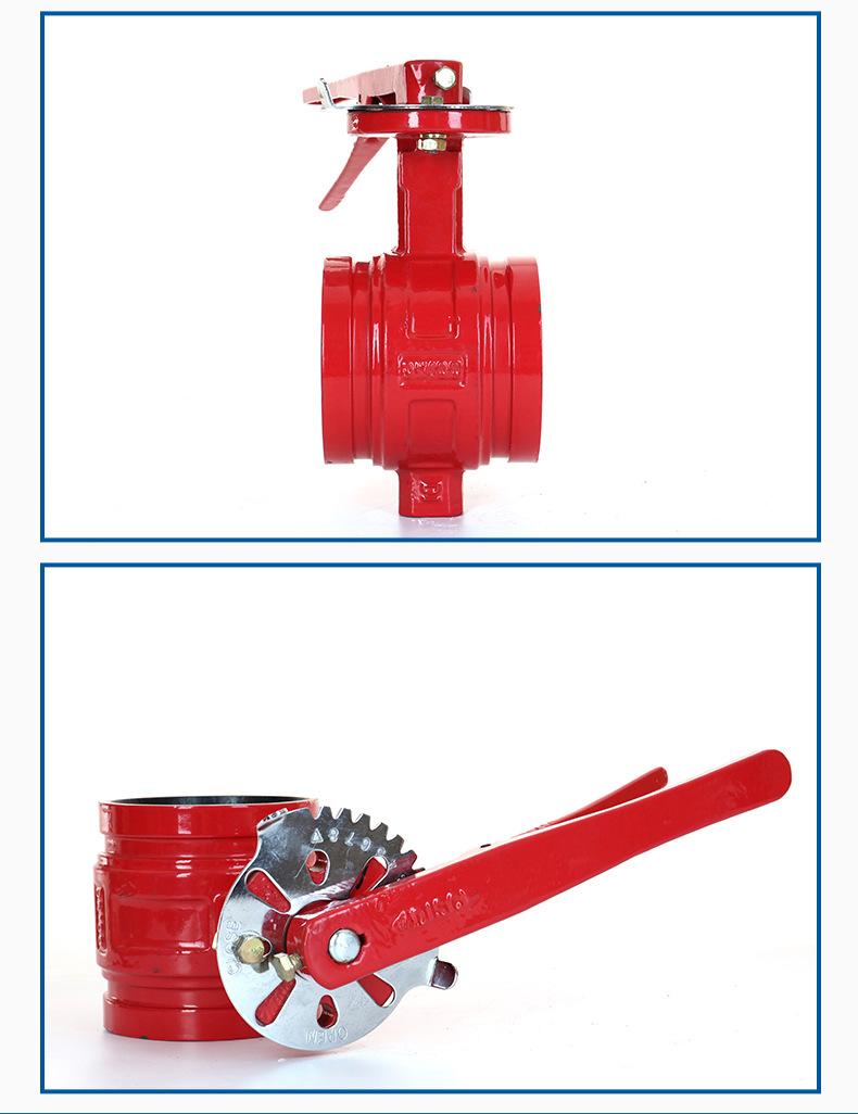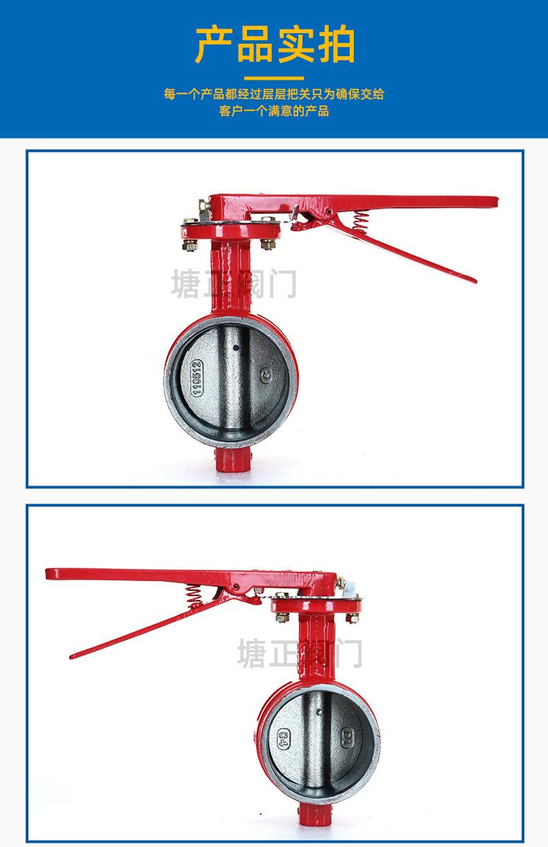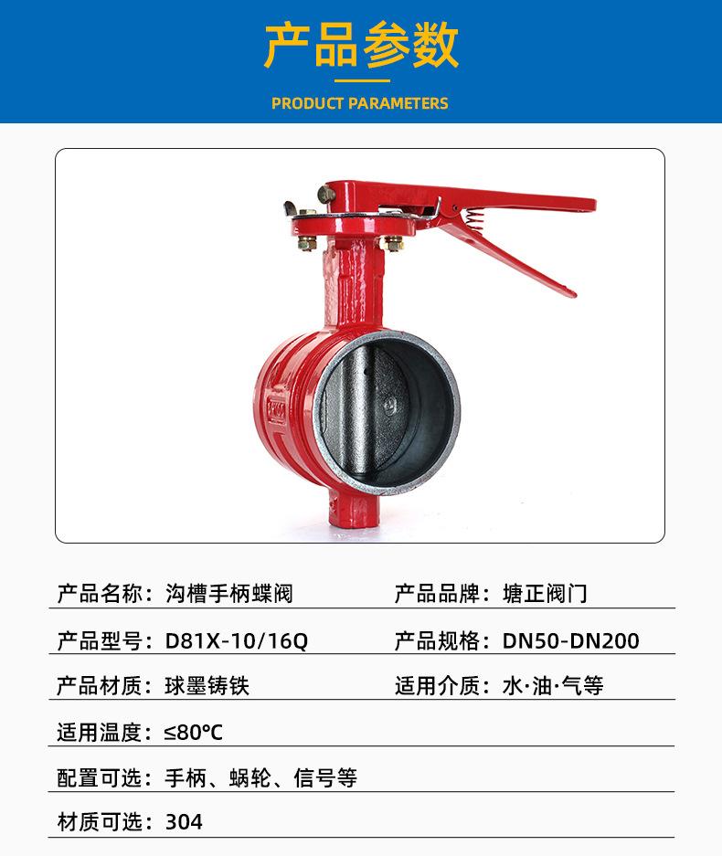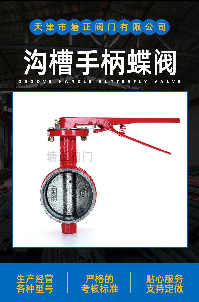Válvula de mariposa ranurada con manija positiva Tianjintang D81X-10/16Q, tipo abrazadera, para procesamiento de sistemas de agua contra incendios.