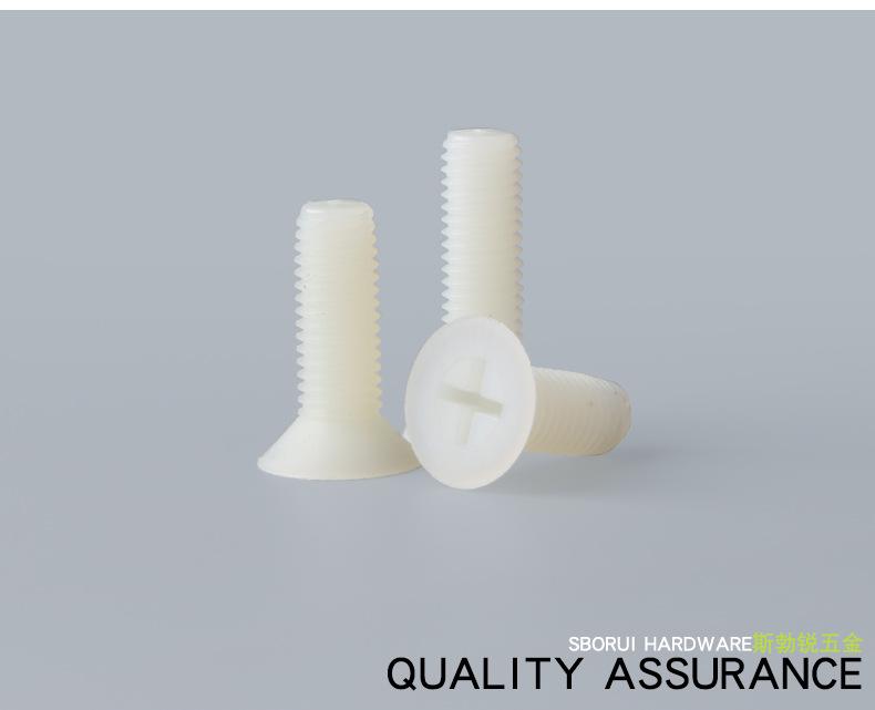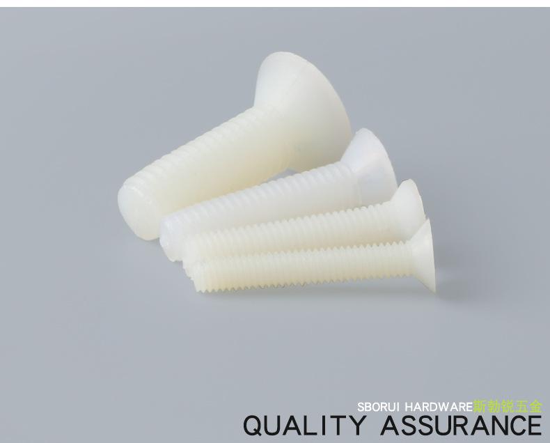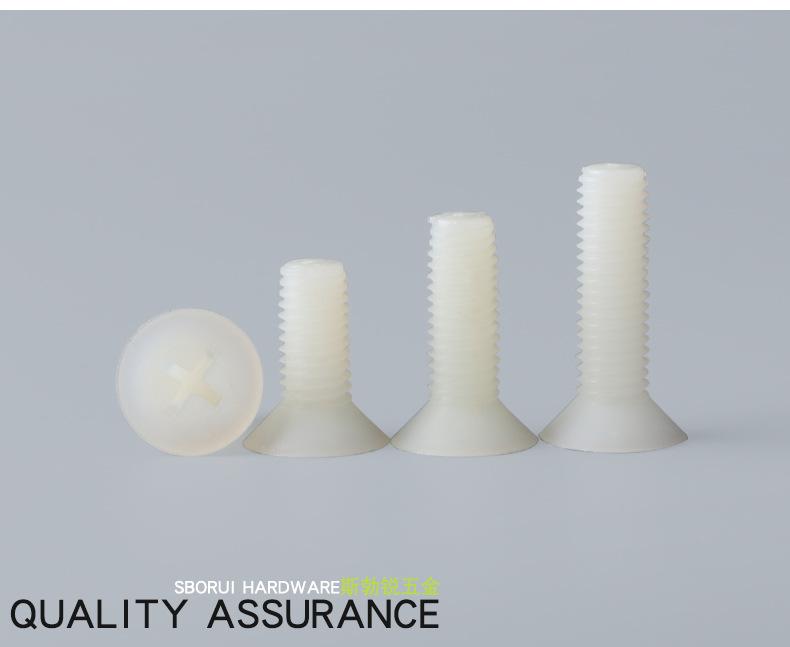 Tornillo de nailon M2.5M3M4M5M6M8, tornillo de plástico, cabeza avellanada cruzada blanca, tornillo de cabeza plana aislado, tornillo dentado para máquina