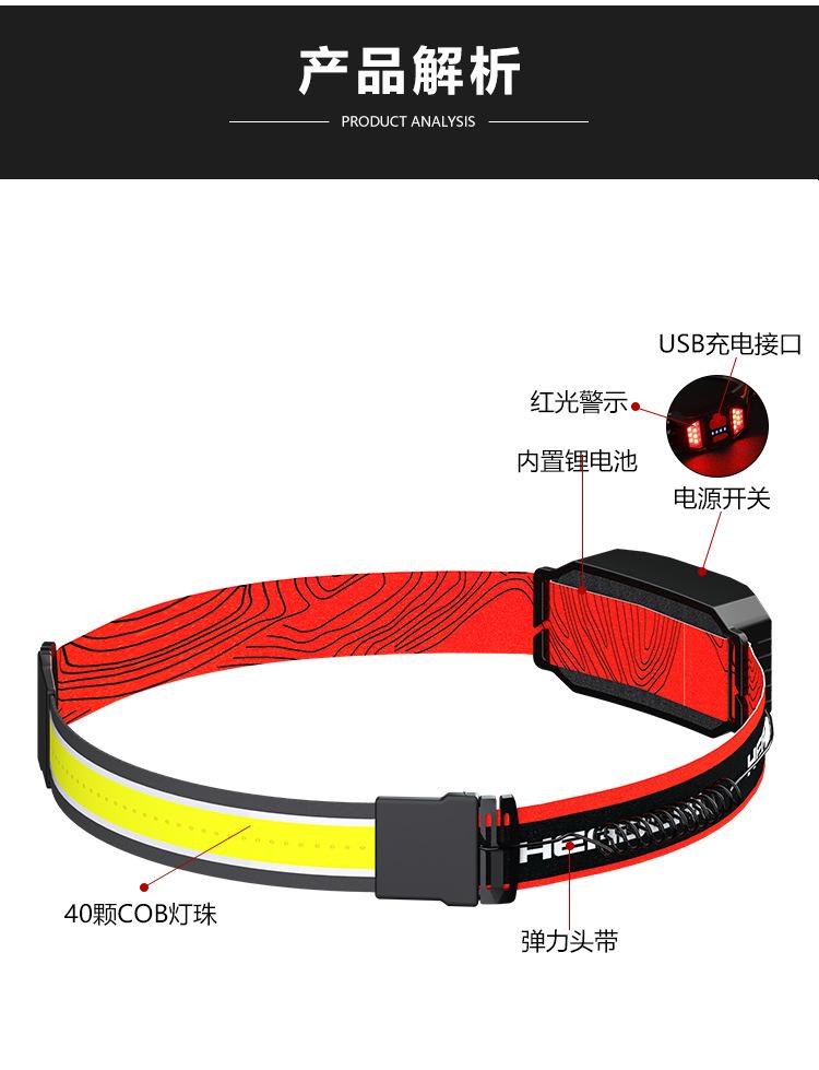 Faro LED de luz potente, carga de largo alcance, impermeable, para uso doméstico, súper brillante, montado en la cabeza, pesca nocturna, inducción al aire libre, una generación de cabello