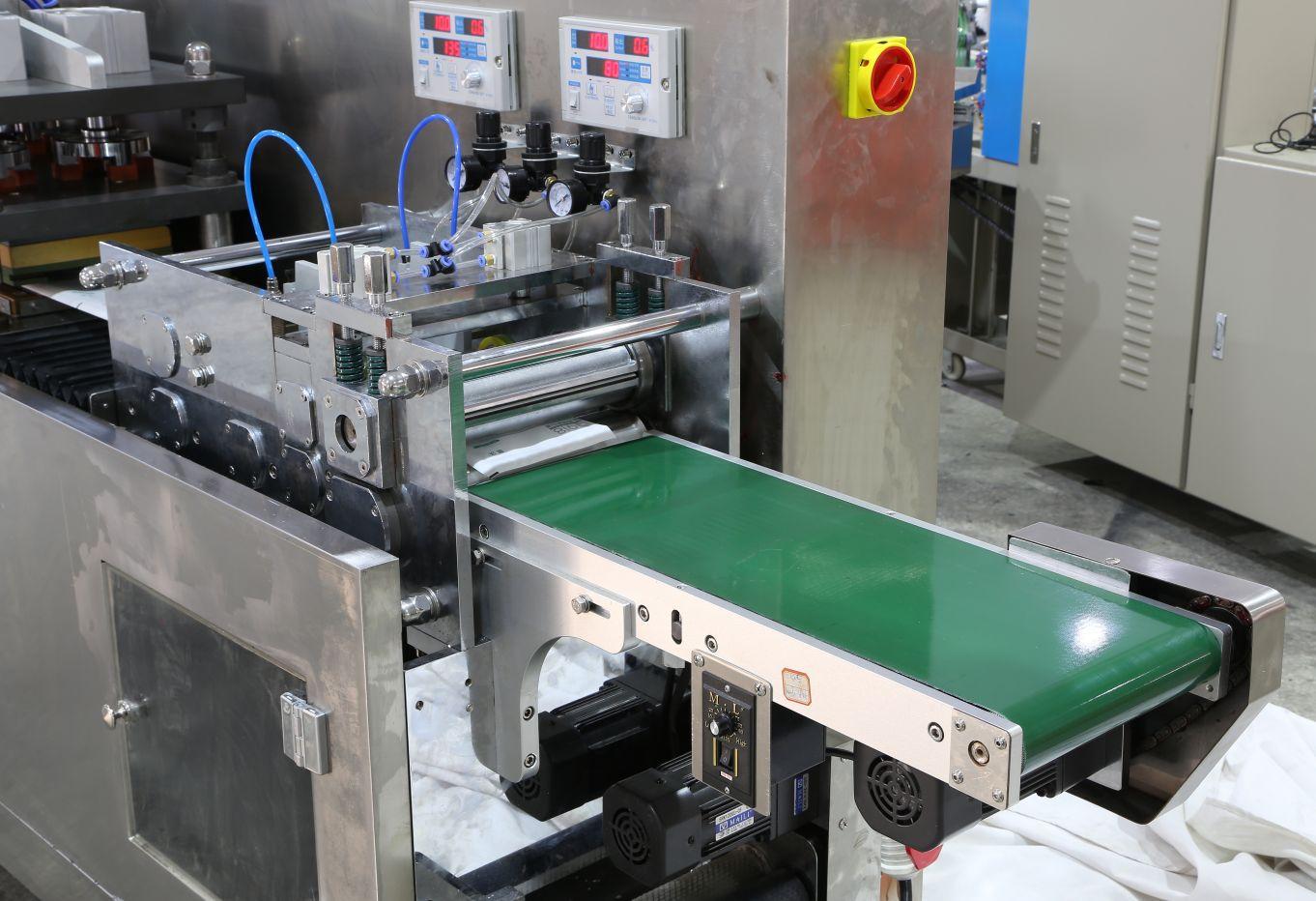 La máquina de envasado automático continuo de sellado por cuatro lados SBF300A es un equipo nuevo, mejorado y actualizado lanzado recientemente por nuestra empresa. Adopta un servomotor de reducción planetaria y tecnología de control integrado mecánico, eléctrico, óptico y neumático. Está diseñada de forma innovadora en estricto cumplimiento con los estándares de la industria farmacéutica (GMP), y está al nivel líder en China. La máquina tiene funciones avanzadas, operación simple y alta producción. Es el equipo de envasado más ideal para equipos médicos medianos y grandes, empresas farmacéuticas, productos para el cuidado de la salud e industrias alimentarias, e industrias de artículos de primera necesidad. Funciones principales: transporte automático de rollo de película, fabricación automática de bolsas, descarga y llenado automático de material (opcional), alineación de gráficos y texto, codificación automática (impresión del número de lote), termosellado por presión plana, perforación de orificio para colgar de fácil rasgado, corte con rodillo, salida de producto terminado y reciclaje de residuos.