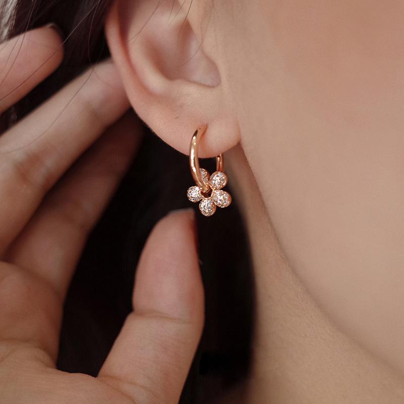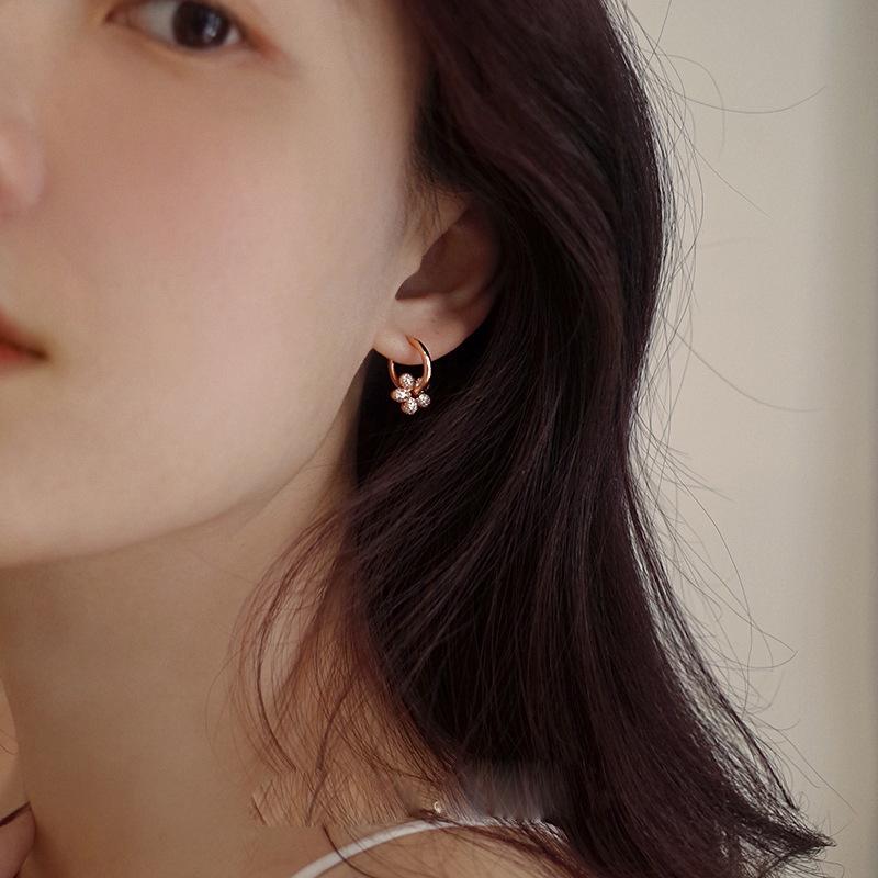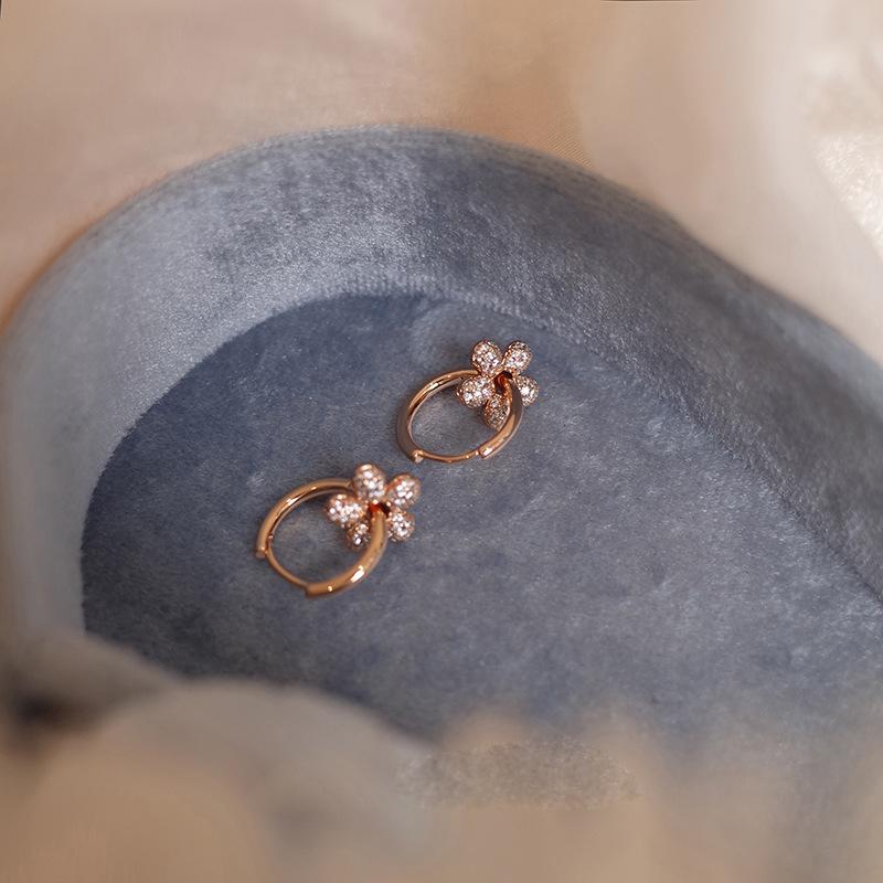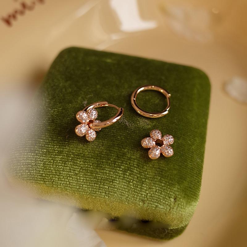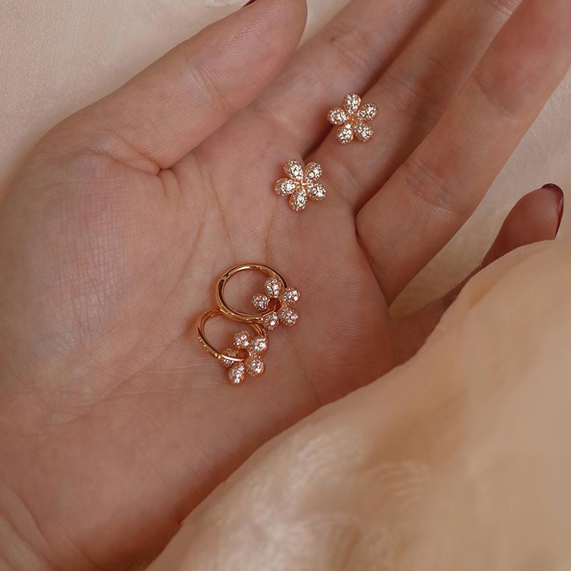 Pendientes de lujo ligeros con flores de diamantes para mujer, nuevos y populares pendientes de verano de 2024 con hebilla de oreja sencilla y combinable.