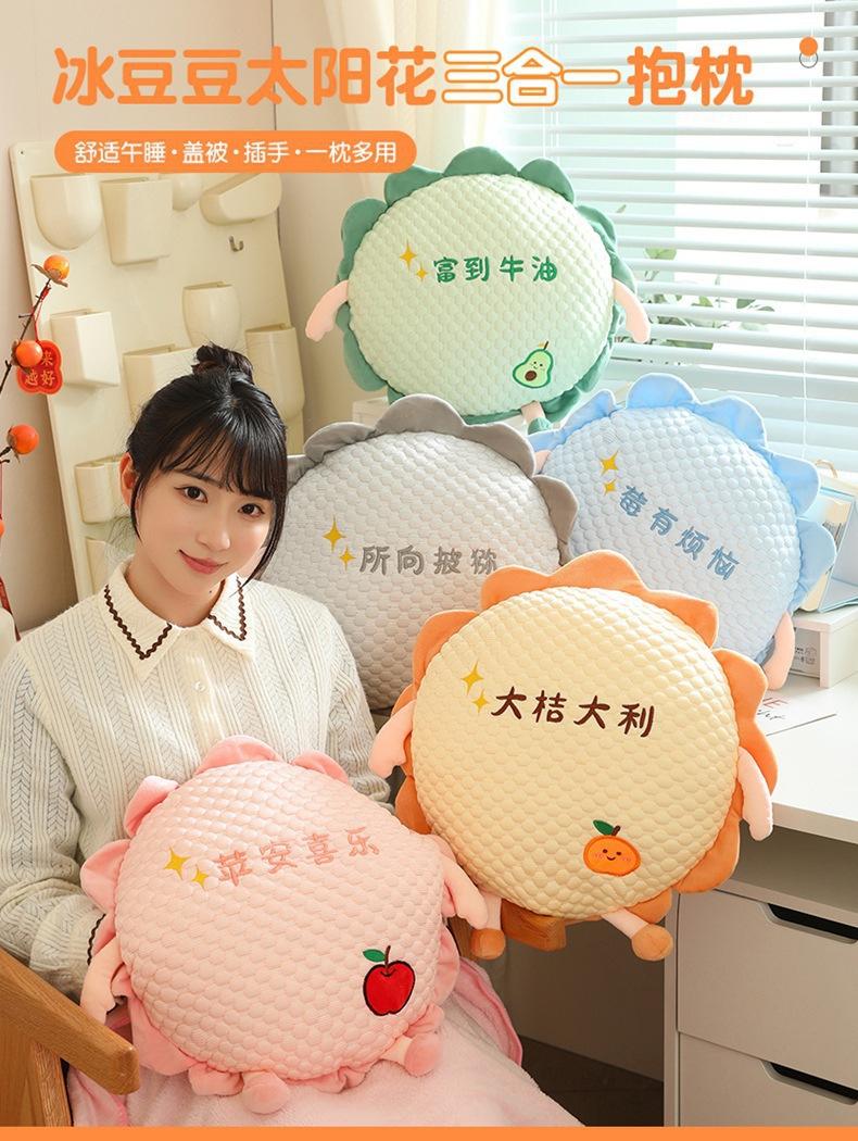 Manta de siesta Ice Doudou con diseño de girasol para la oficina, con aire acondicionado, tres en uno, plegable para coche, venta al por mayor