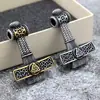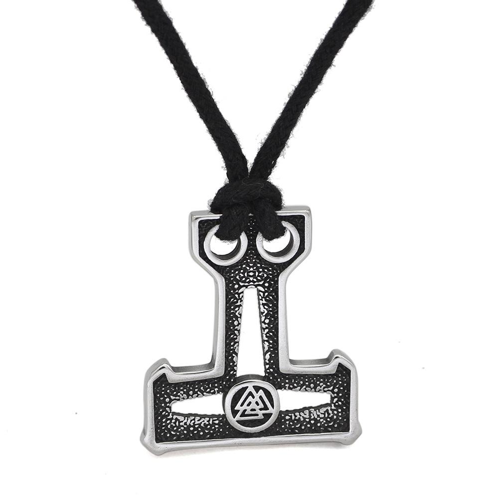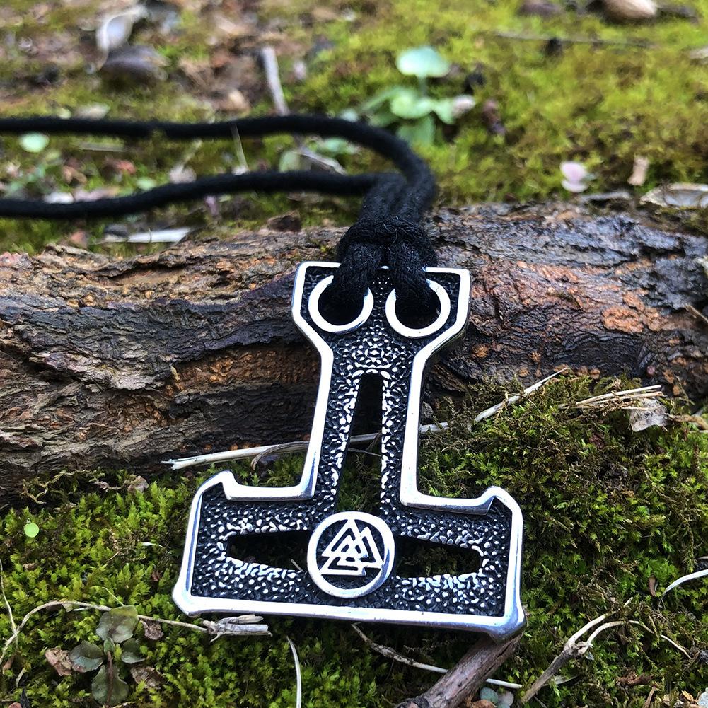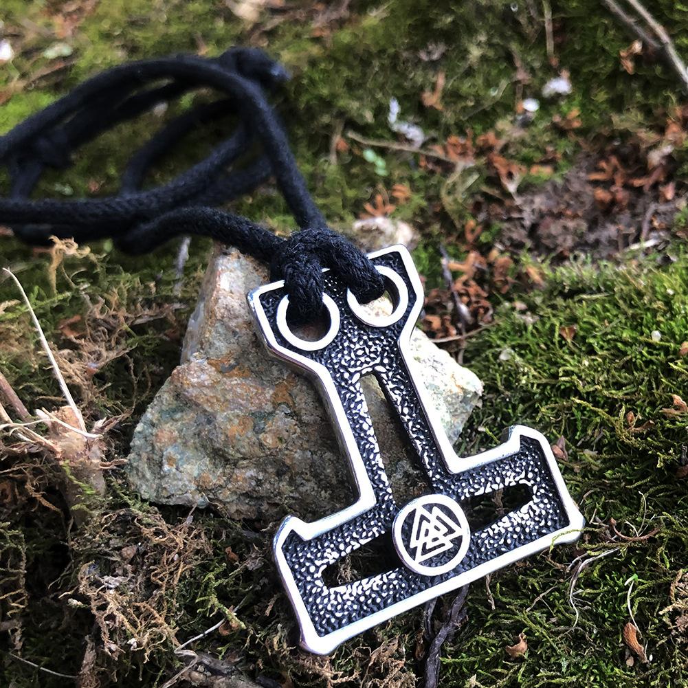 Colgante de cuerda de algodón de doble agujero con martillo de Thor, mito nórdico, colgante hueco de doble cara, runa triangular vikinga, joyería al por mayor