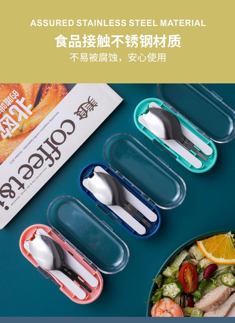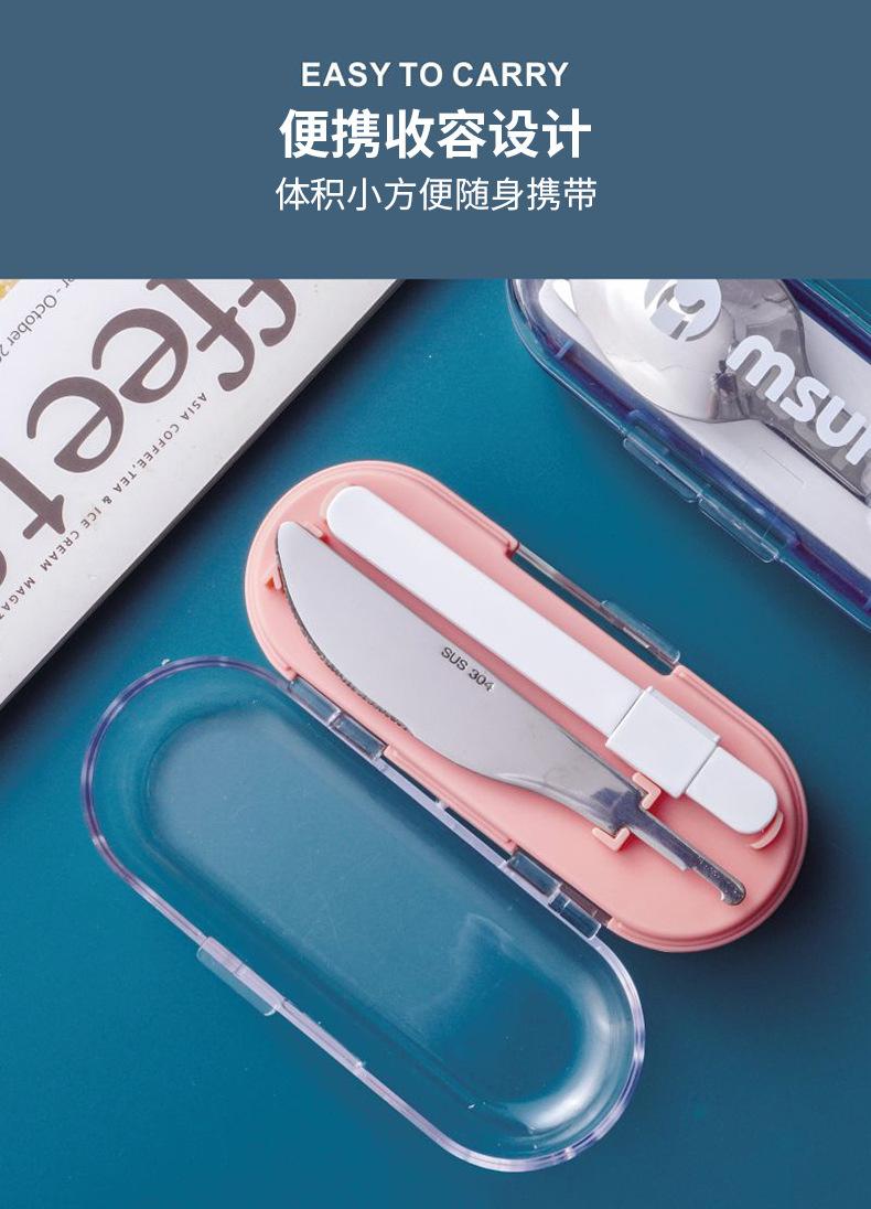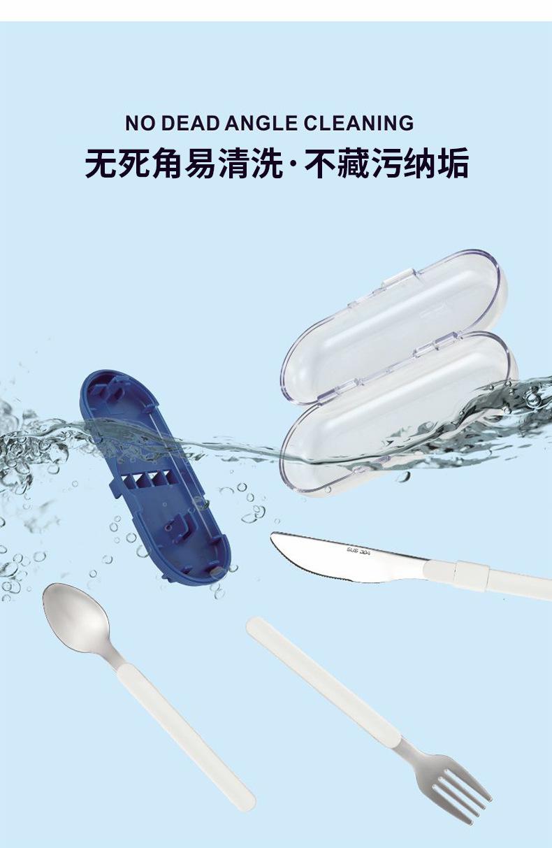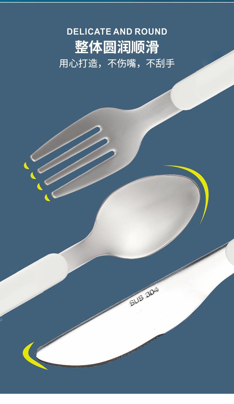 Juego de tres piezas de cuchillo, tenedor y cuchara de acero inoxidable de grado alimenticio, diseño de hebilla, mango plegable, cuchillo, tenedor, cuchara
