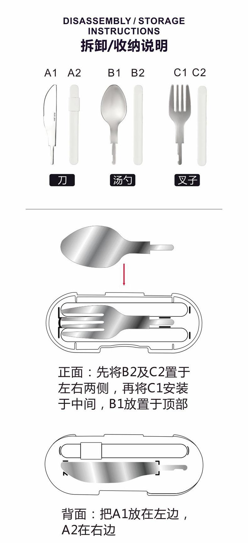 Nombre del producto: Juego de cubiertos de acero inoxidable de tres piezas (cuchillo, tenedor y cuchara)