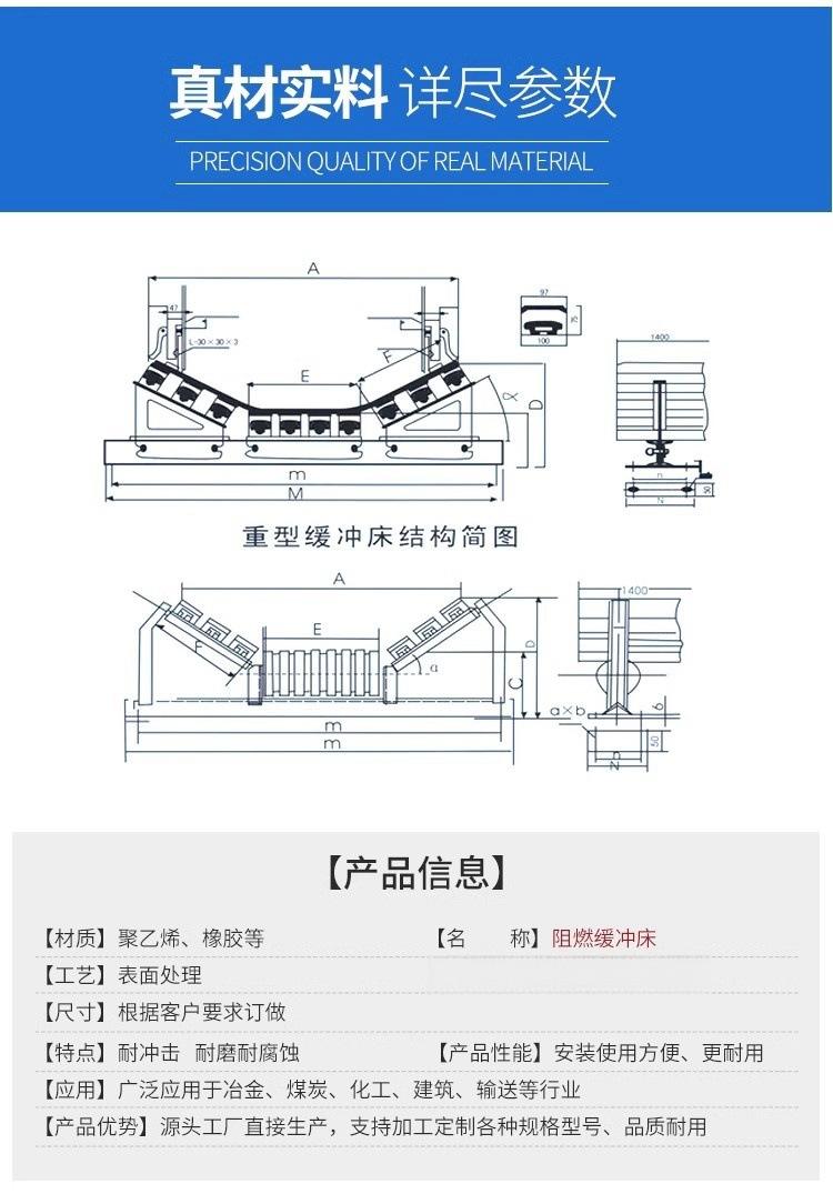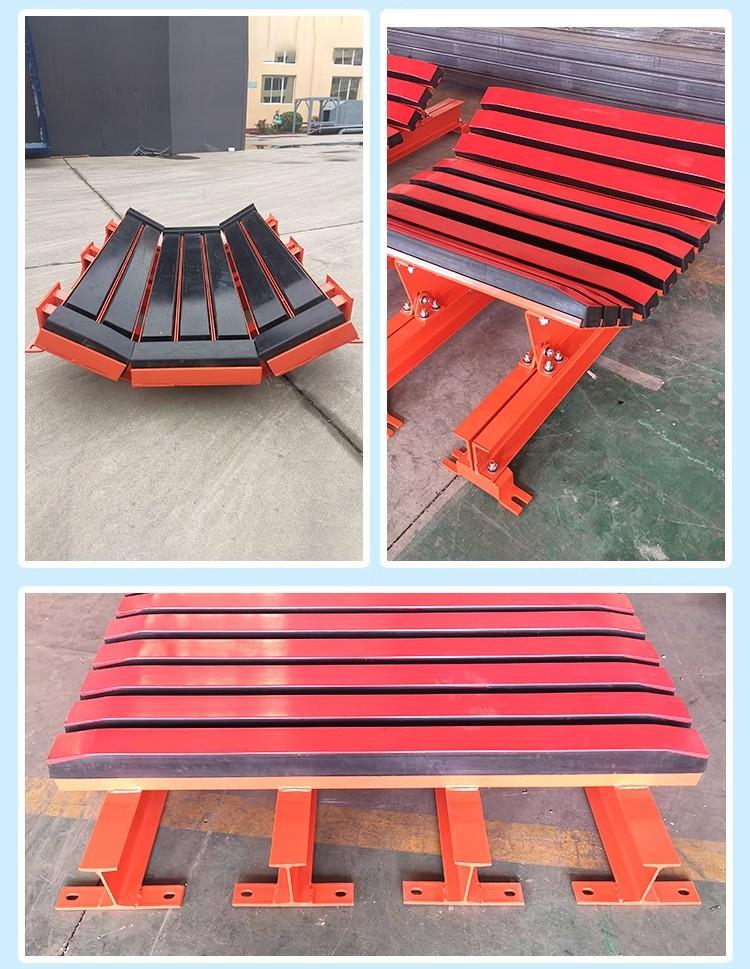 Transportador de banda para minería, lecho amortiguador, retardante de llama, resistente al desgaste, polietileno de peso molecular ultraalto, absorción de impactos, ángulo ajustable, transportador de carbón
