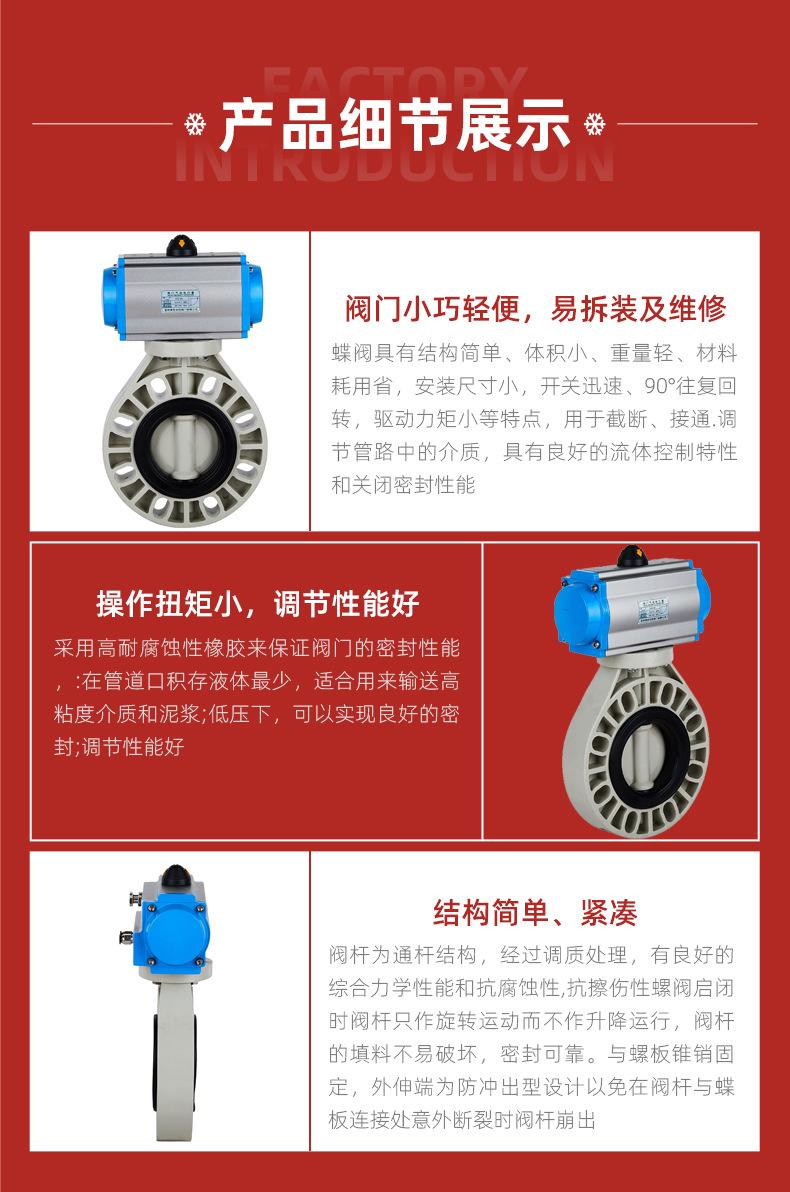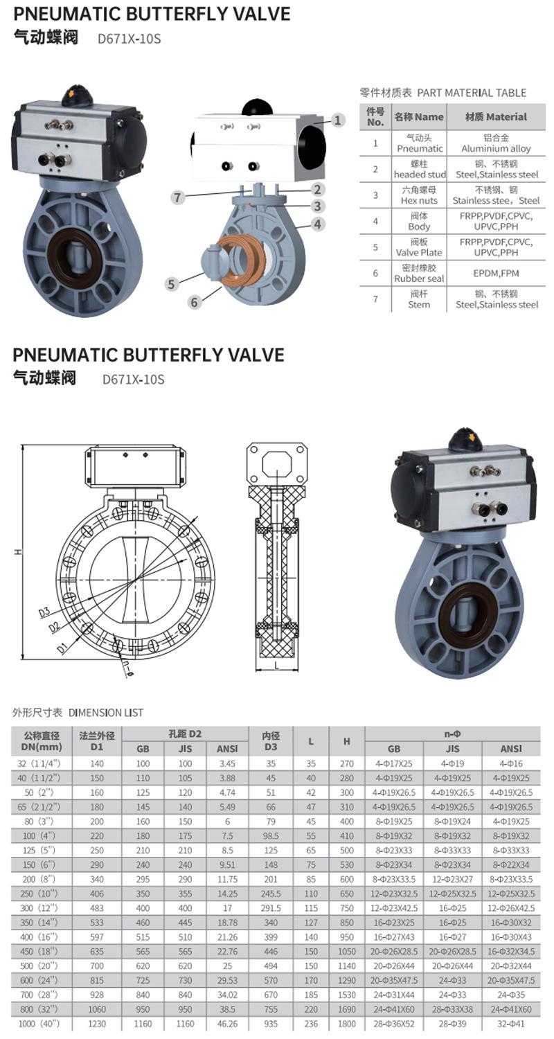 Válvula de mariposa industrial de plástico PPH KXPV, válvula química de plástico, válvula de mariposa neumática, estándar americano