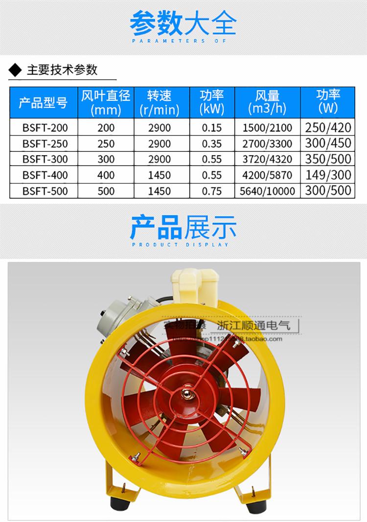 Ventilador axial móvil seguro a prueba de explosiones BSFT-400 mm de fábrica, ventilador de extracción portátil, ventilador portátil