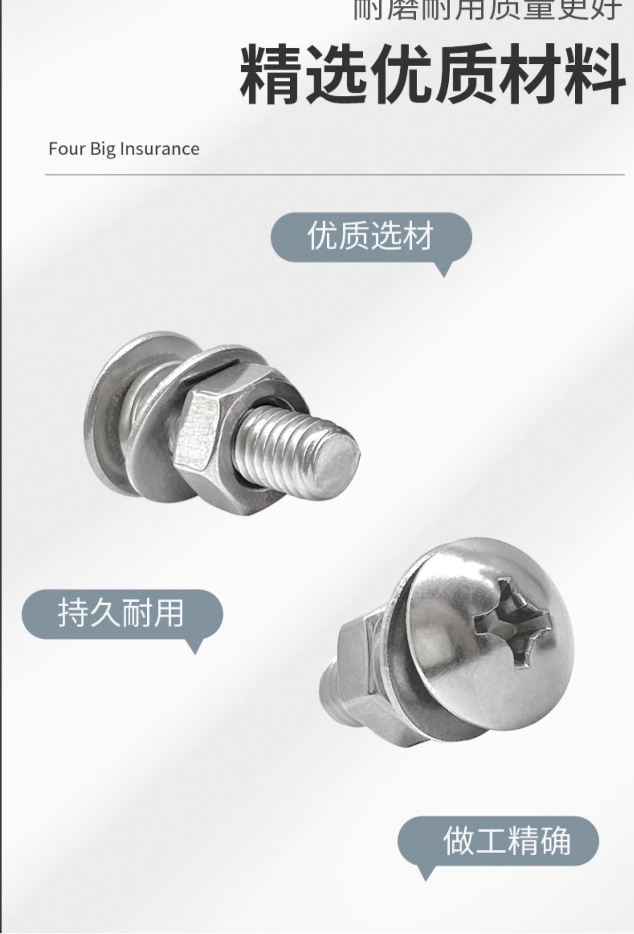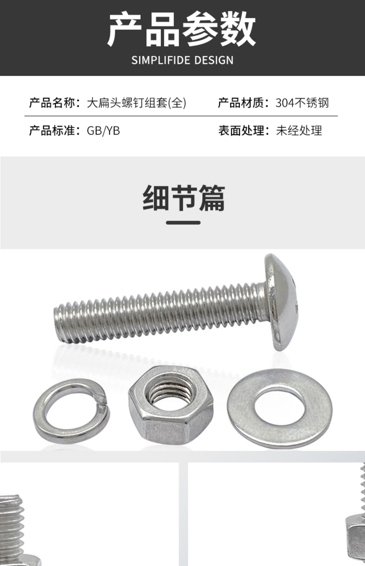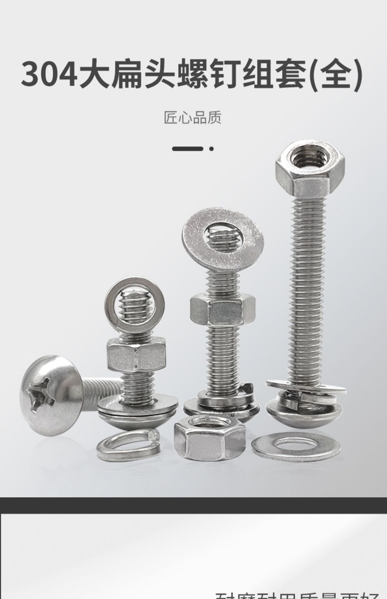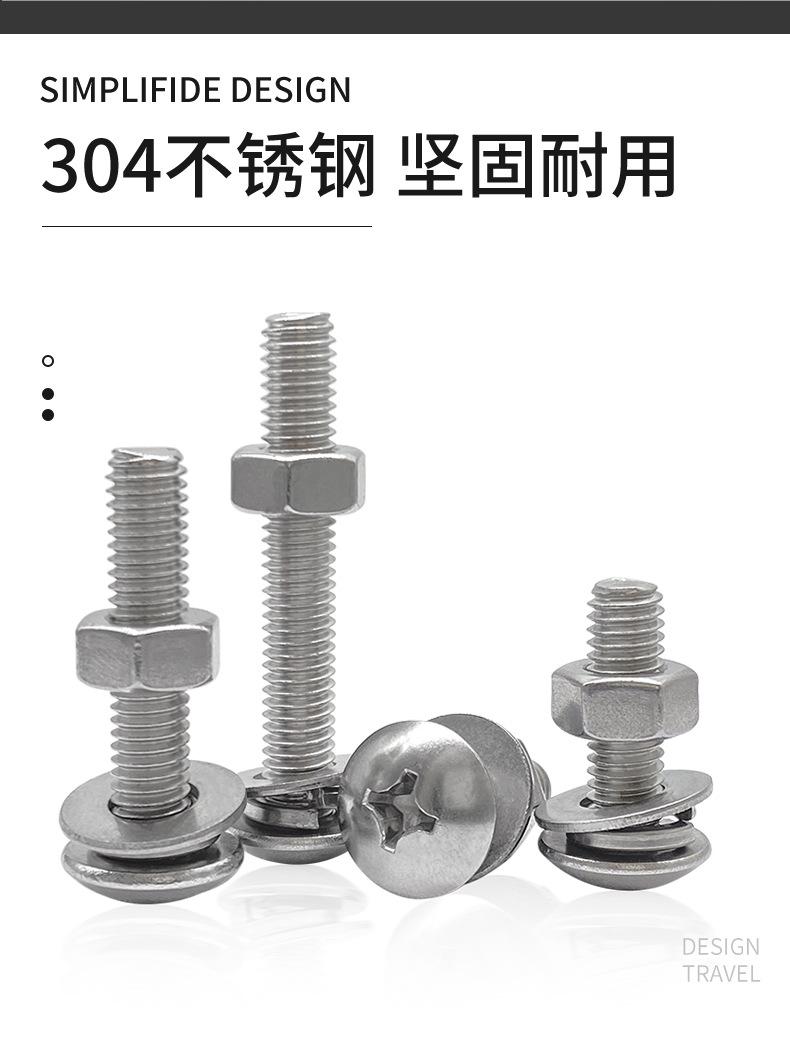 Tornillo de cabeza plana grande de acero inoxidable 304 con tuerca combinada, compatible con junta de cabeza semicircular, almohadilla de resorte 2M3M4M5M6M8
