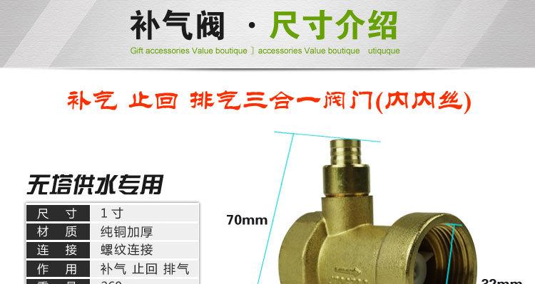 Tanque de presión de bomba de agua, válvula de reposición de escape de retención tres en uno, válvula de retención de suministro de agua sin torre, válvula de escape