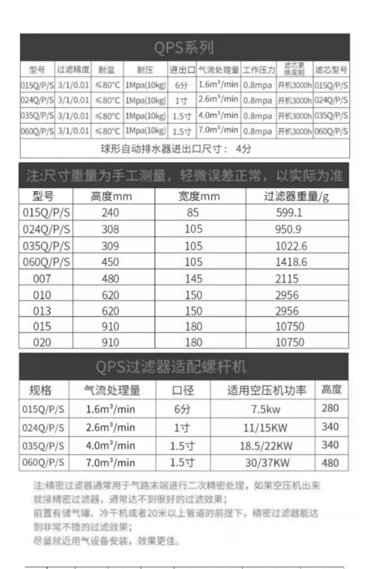 Compra Compresor de aire, filtro de precisión de aire comprimido, separador de aceite y agua, separador de gas y agua QPS, filtro de aceite para bomba de aire. al por mayor en Joom.pro