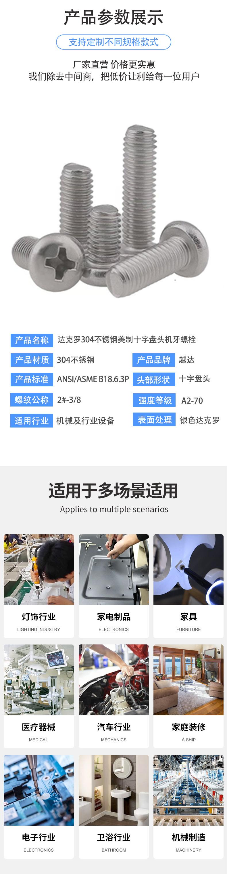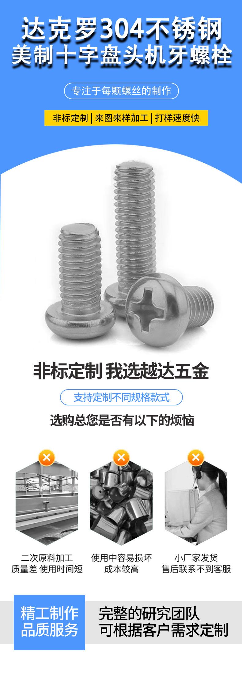 Tornillo de máquina de cabeza plana con ranura en cruz americana de acero inoxidable 304 de color gris plateado Dacrome, tornillo de cabeza redonda con ranura en cruz 304