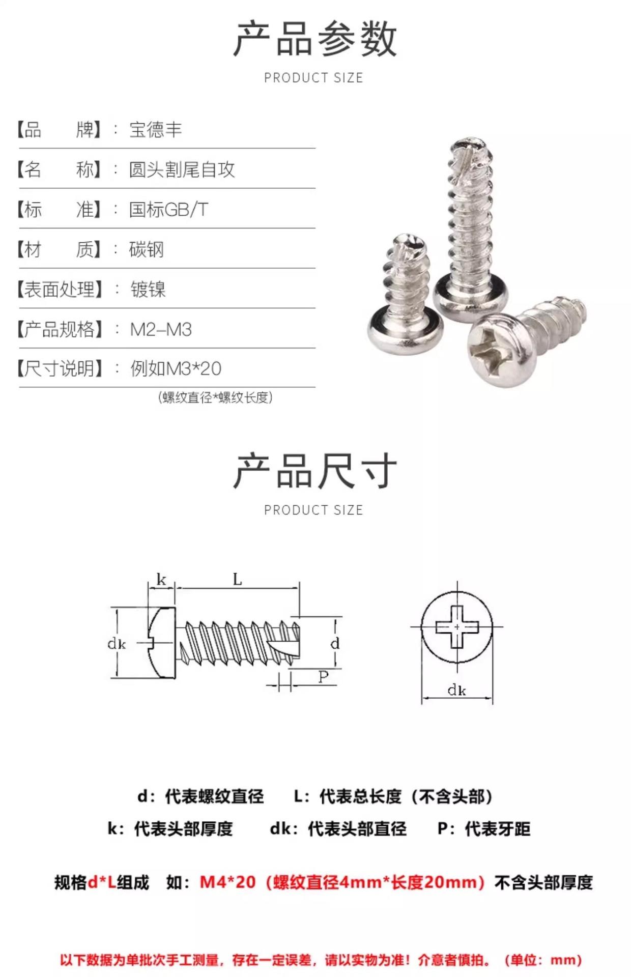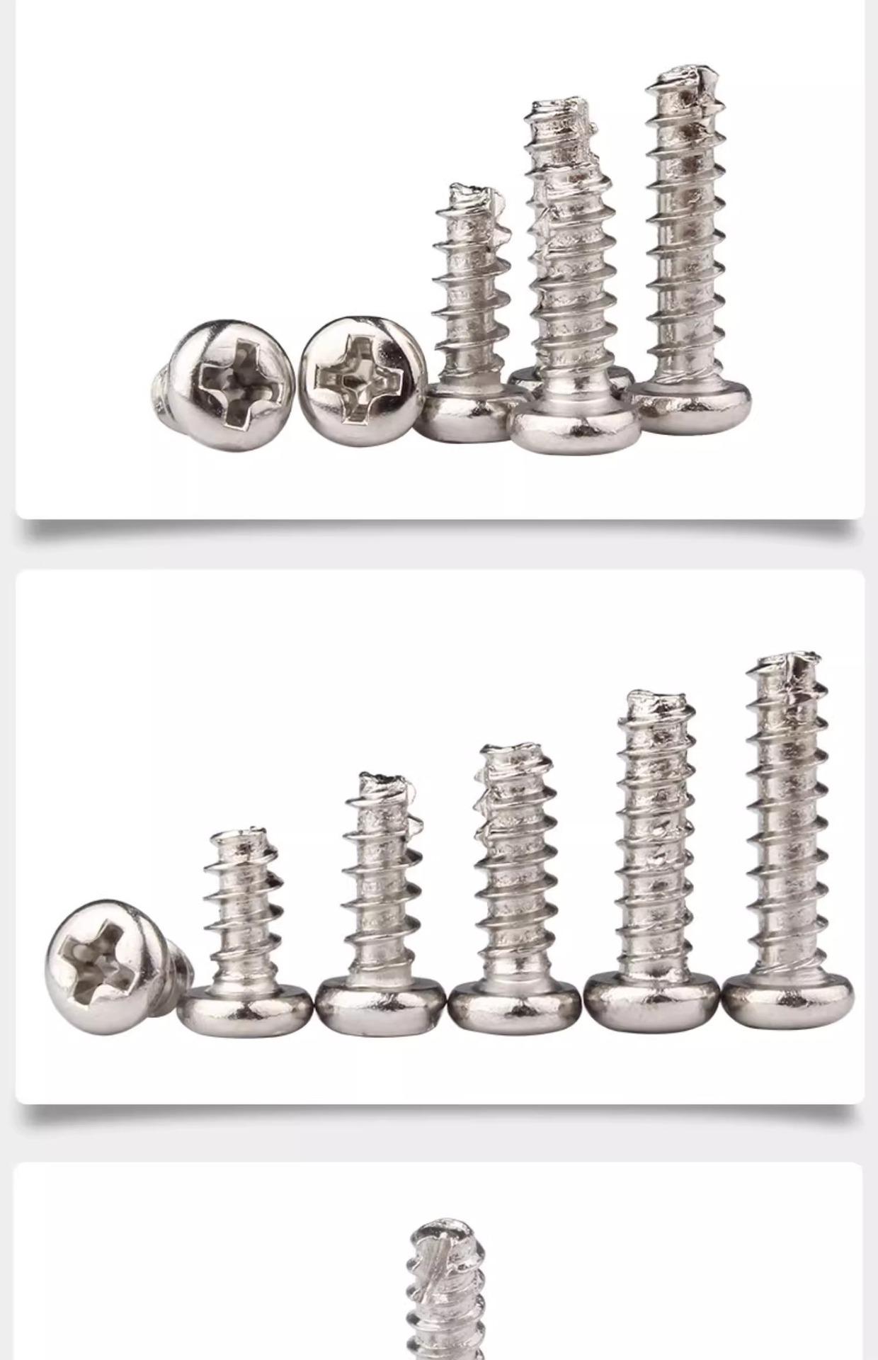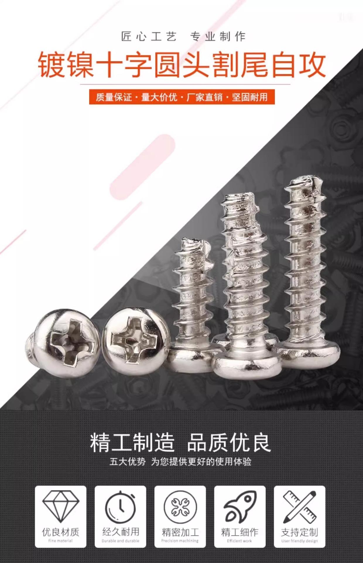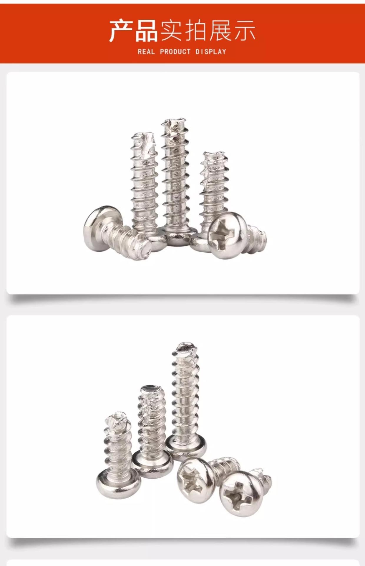 Tornillo autorroscante de cabeza redonda con corte en cruz niquelado, tornillo autorroscante de cabeza plana negro, tornillo pequeño electrónico PT M2M2.6M3