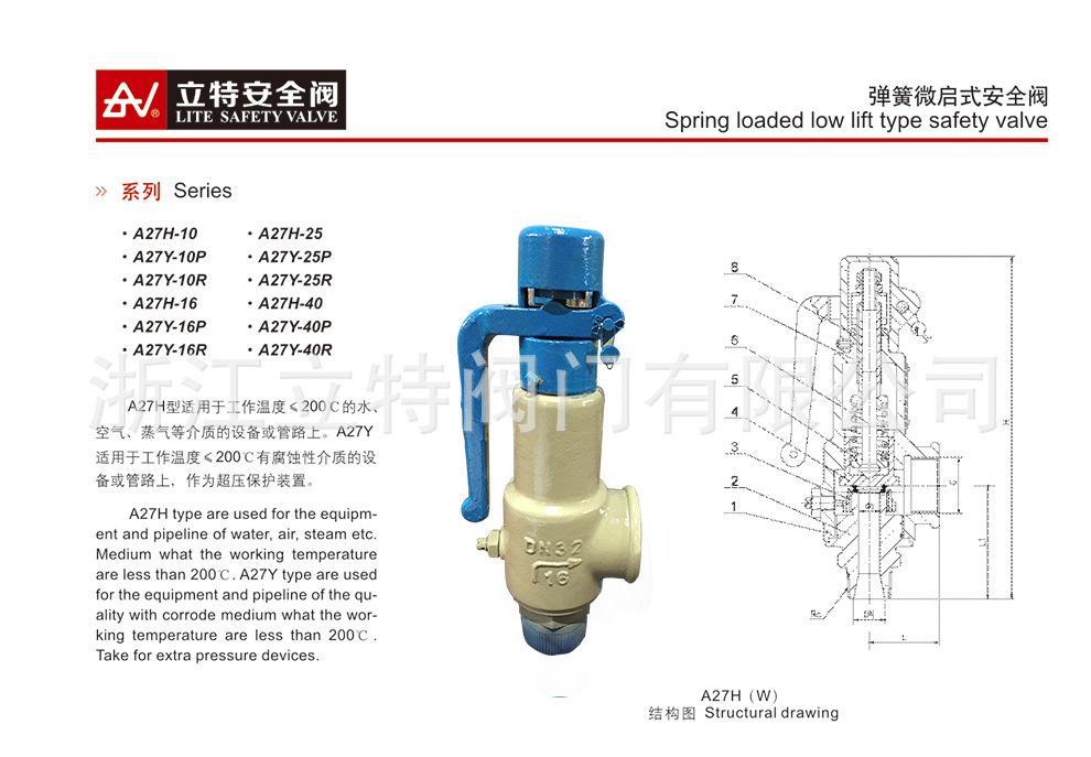 Venta directa de fábrica A27H-16C resorte de válvula de seguridad de aire comprimido con manija de microelevación