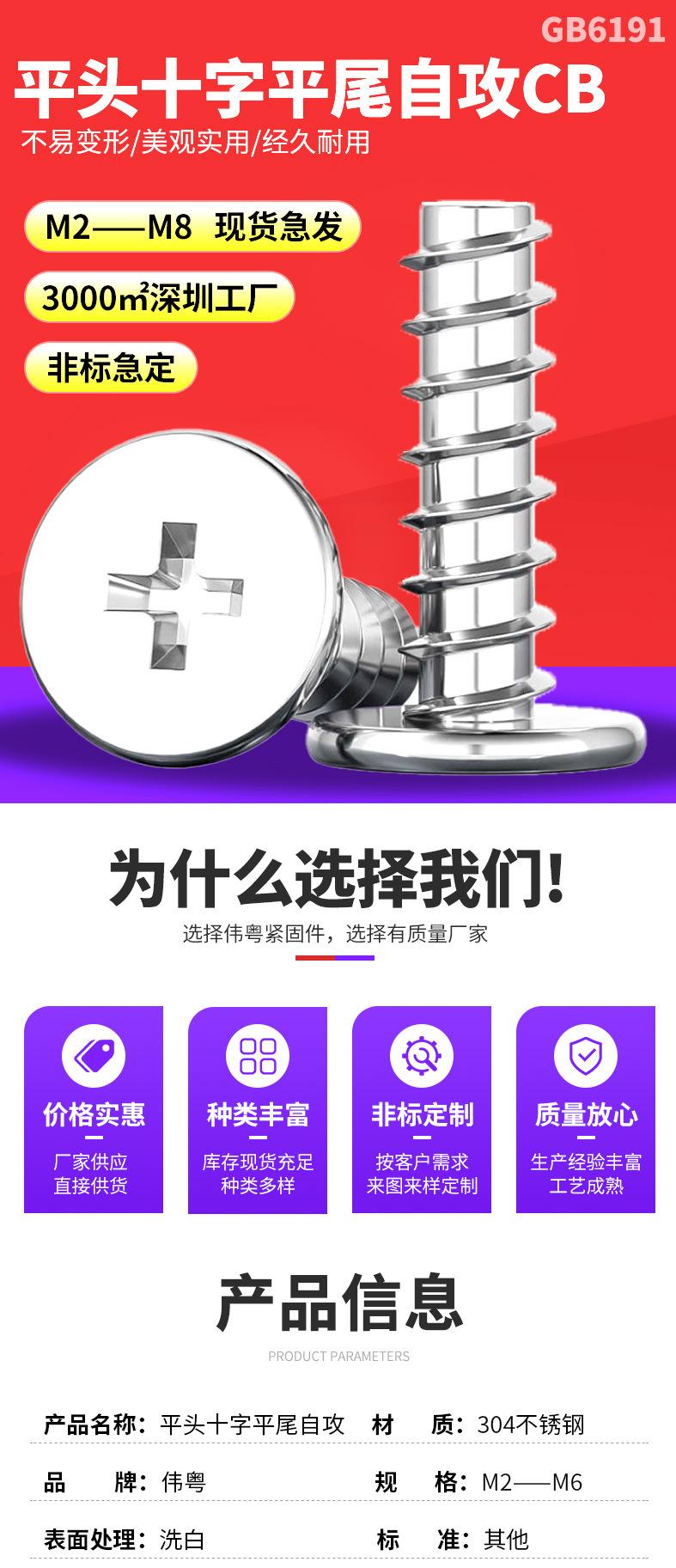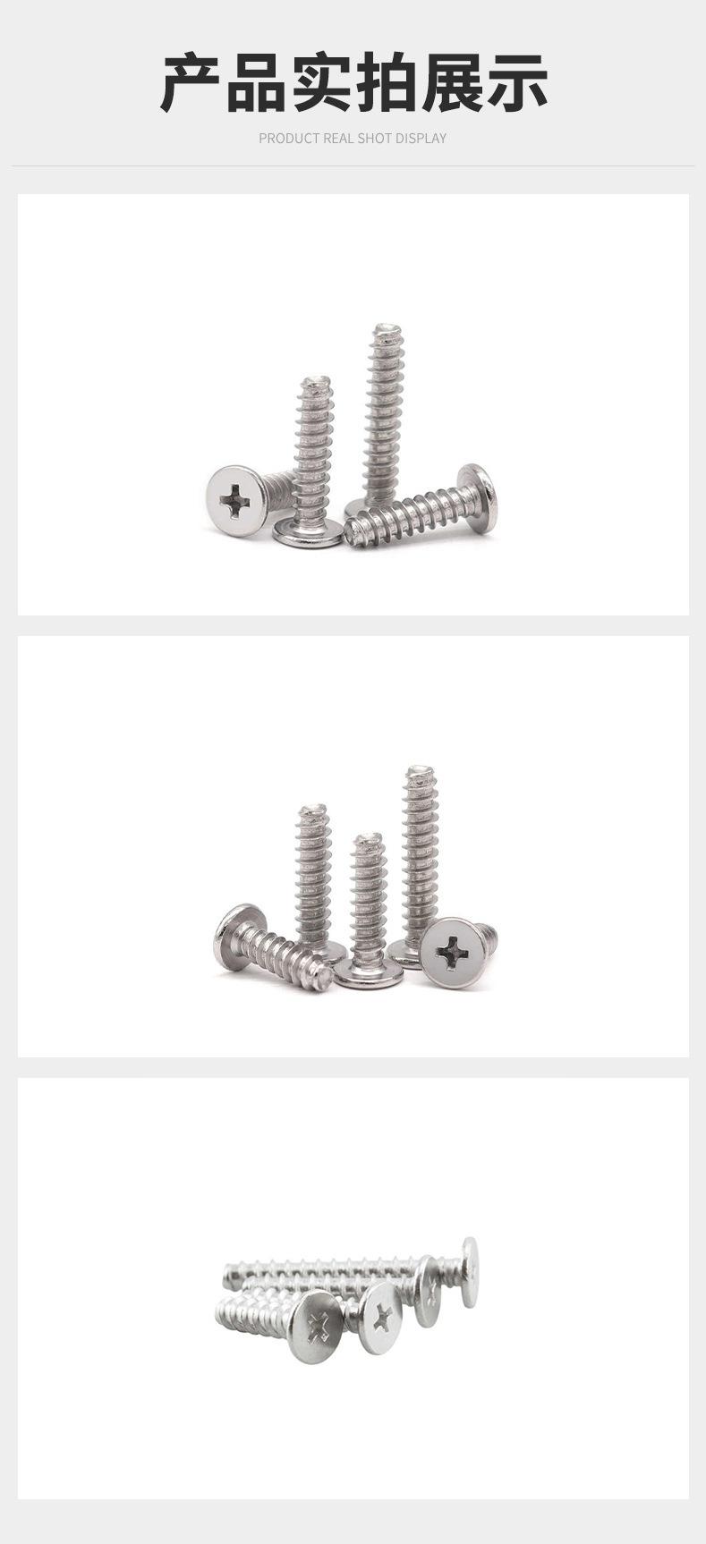 Tornillo autorroscante de cabeza plana y delgada en cruz CB de acero inoxidable 304, tornillo de cabeza plana y cola plana, M2.6/M3/M4/M5