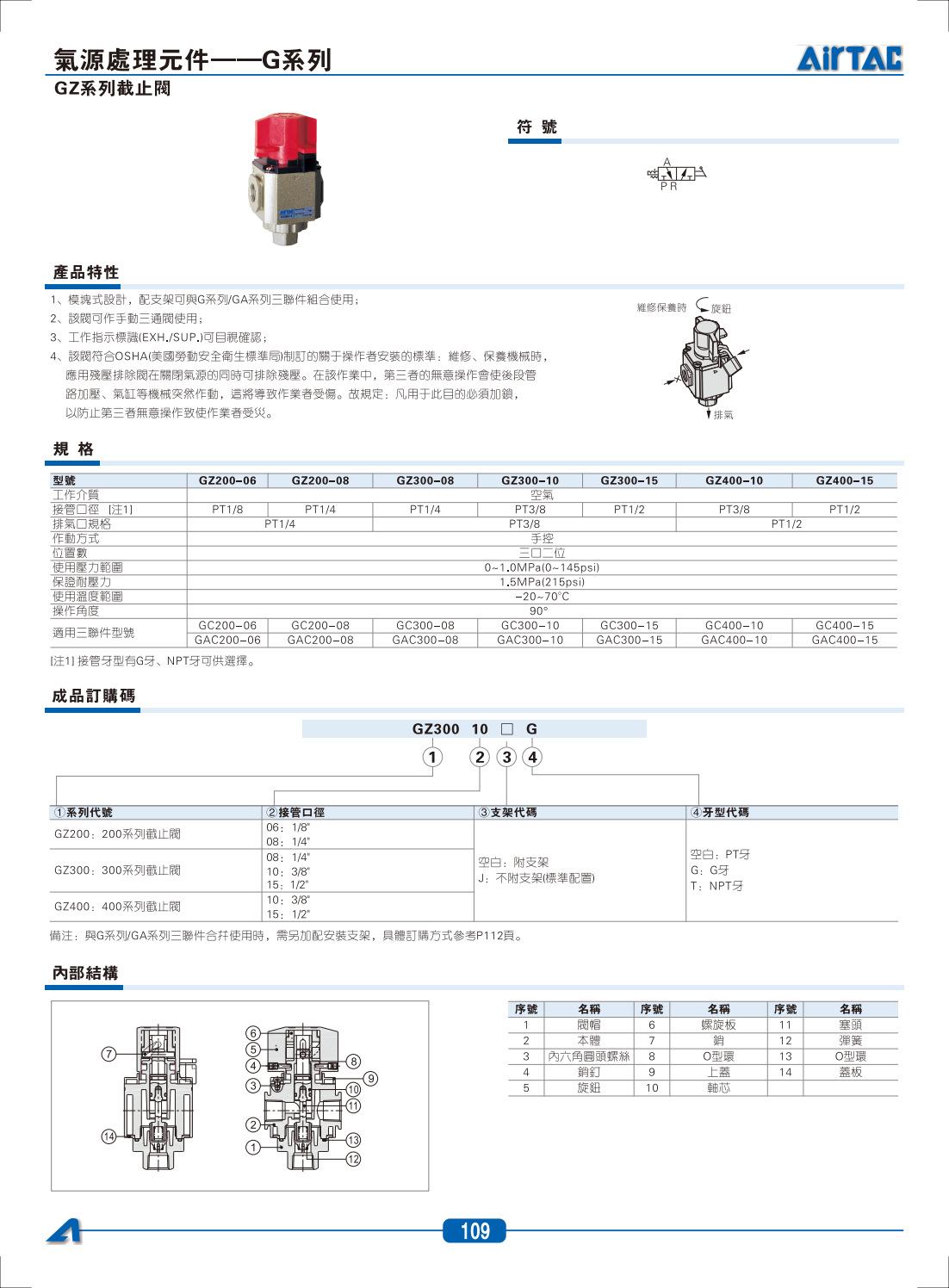 Airtac Genuino Gz200-06/08 Gz300-08/10/15 Gz400-10/15 Corte